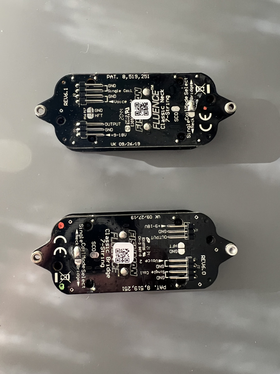 Vendo este set de pastillas Fishman Fluence Open Core Classic para 7 cuerdas. Incluyo las dos pastillas (mástil y puente), cables de ambas y cuatro tornillos para regular su altura al instalarlas.