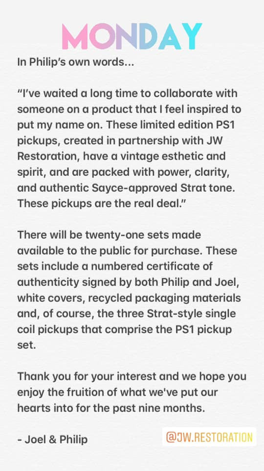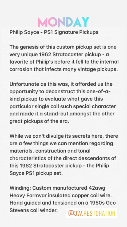 Se trata de unas JW Restoration PS-1 Philip Sayce Ltd. Ed., con las mismas especificaciones que las pastillas de la "Mother" de Philip Sayce.