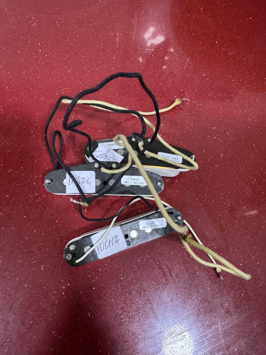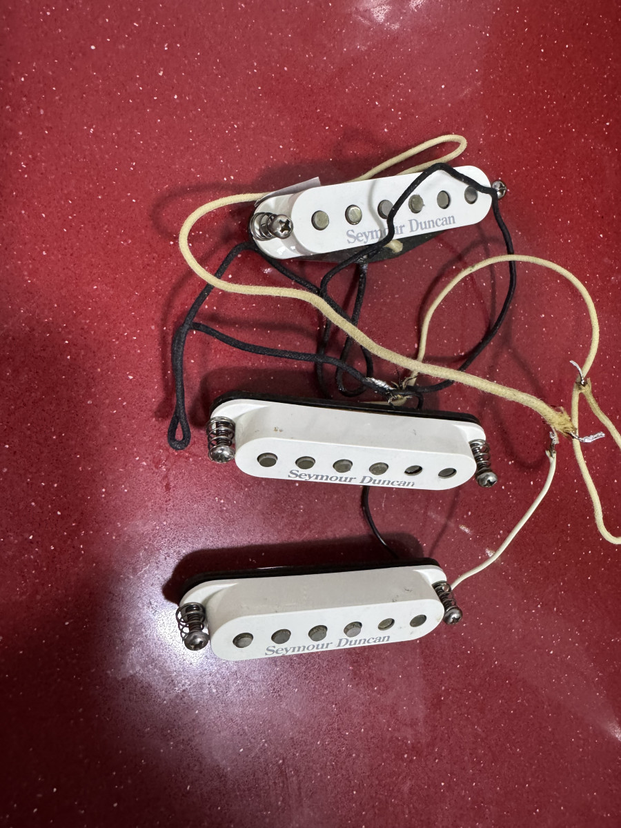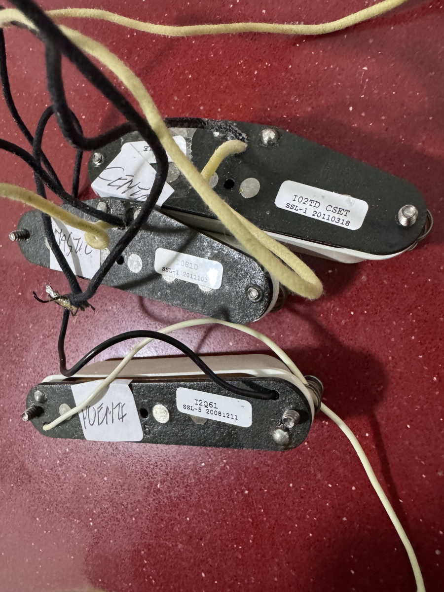 Set completo,con una SSL5 en puente,que para mí es el complemento ideal para estas pastillas.Uno de los mejores sets para Stratocaster.Incluyo muelles y Tornillos.No las vendo sueltas,solo el juego entero.Gracias.Envio no incluido.