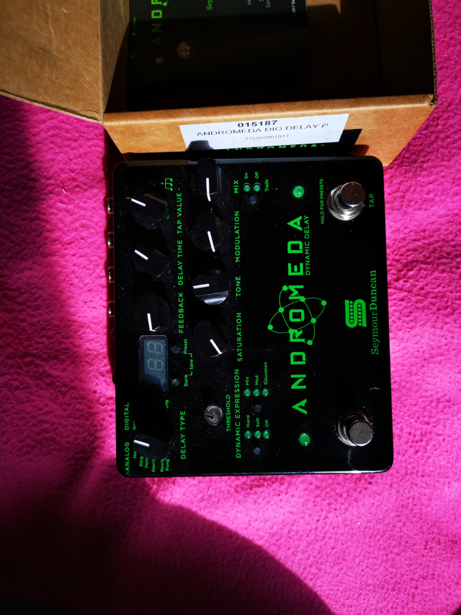 Vendo pedal de delay Seymour Duncan Andromeda, en perfecto estado. Incluye caja original. Precio actual en tienda 370 euros.