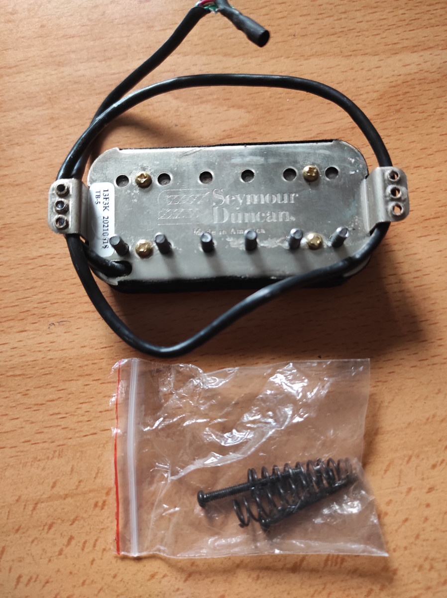 Hola buenas vendo está pastilla seymour Duncan tb5 exclusivamente fabricadas para Dean no intentes comprarla en tienda ya que no la encontrarás ,este acabado solo verás la cebra que es de color más crema,está en concreto es de una dean ml select flame trans brazilia floyd rose posición puente,está nueva a estrenar ya que nada más comprar la guitarra la sustituí por una seymour Duncan sh13.
