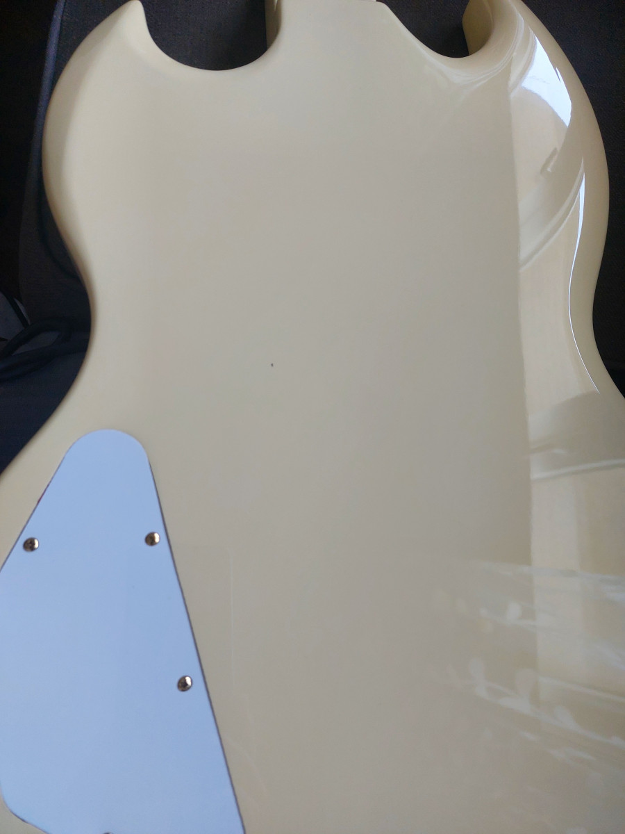 Todo en caoba con mástil encolado, diapasón de laurel (oscurito), cavidad electrónica apantallada y 3 pastillas Epiphone alnico 5 instaladas (se incluyen las originales también). Entre guitarra,pastillas y luthier fueron sobre 330€ lo invertido en mejorar el instrumento conforme viene de fábrica, y se logró.