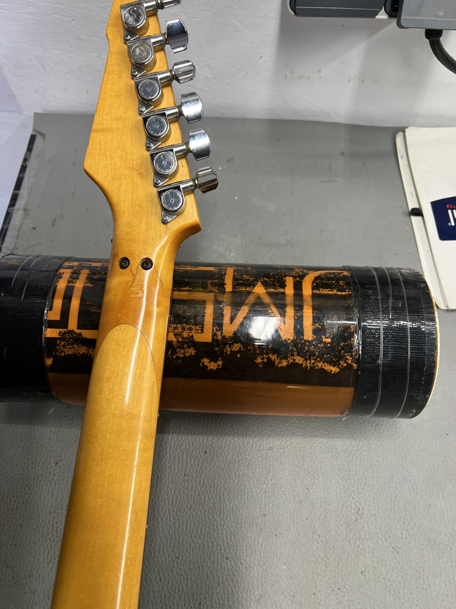 Superstrat alemana de los años 90. Hardware Schaller de alta calidad. Pastilla de puente Ibanez rg550 japan. Suena genial y es comodisima, la madera del cuerpo es realmente bonita y el mástil tiene un perfil parecido a Ibanez, bien para leads, etc. El puente es muy cómodo, sobretodo para cambiar cuerdas, ya que no hay que cortar la bola.