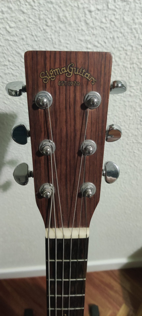 Vendo esta Sigma 000-15M, una acústica con un tono cálido, equilibrado. Es el modelo inspirado en las clásicas 000 de caoba maciza, ideal para fingerstyle, blues, folk y acompañamiento suave.