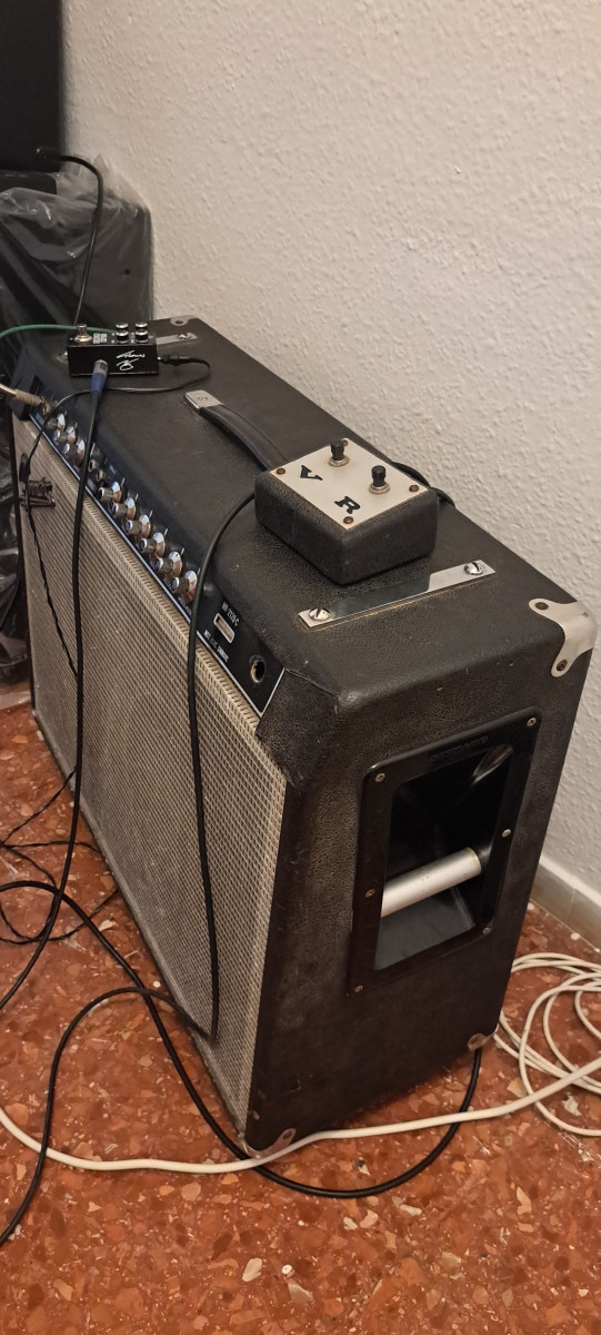 Combo a valvulas inspirado en los viejos fender twin reverb y bassman, fabricado en Barcelona en los 70s, todas las piezas originales, a excepcion de las asas laterales ,con pedal de reverb y tremolo, tiene muchisimo volúmen, regalo pedal atenuador pasivo y funda a medida.