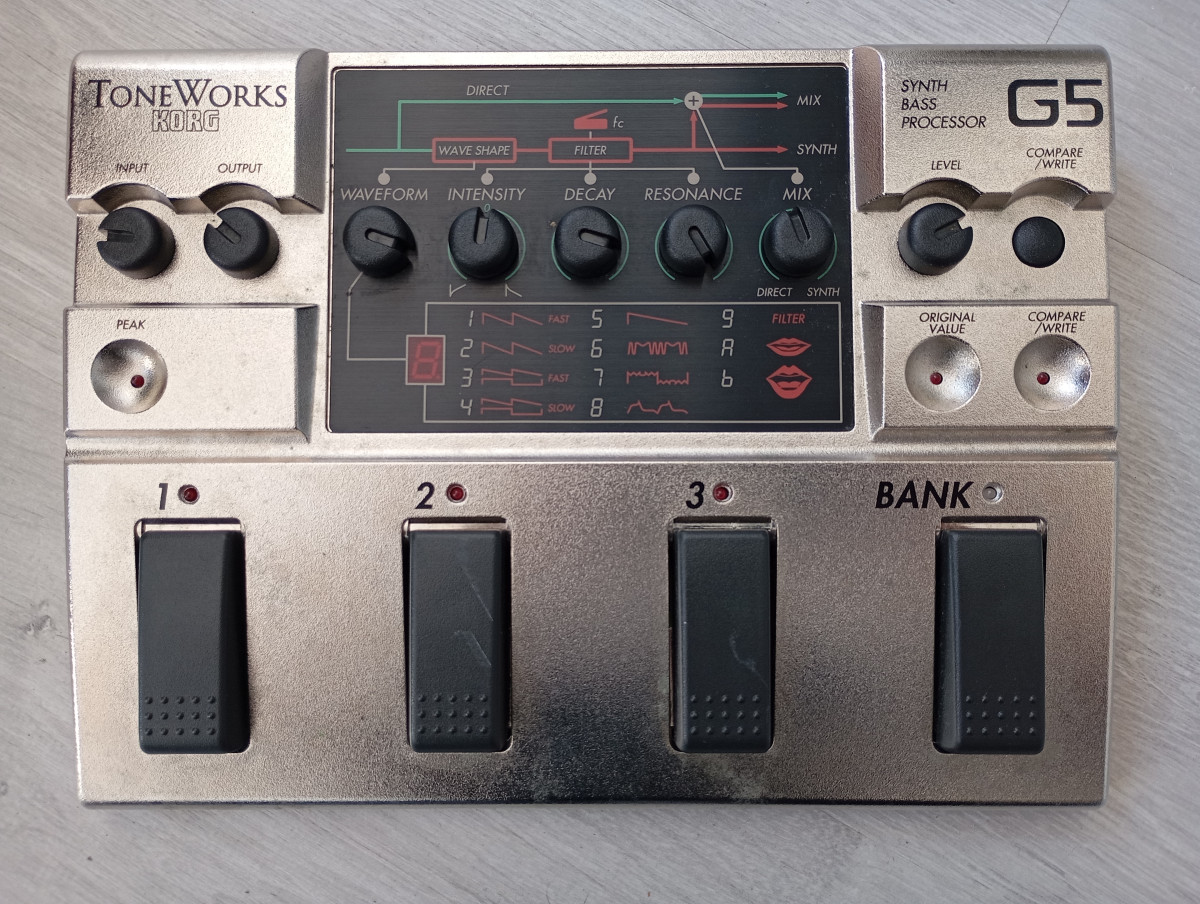 Sintetizador para bajo de la marca KORG. También va muy bien con caja de ritmos u otros sintetizadores. Comprado en 1997. Único dueño. Funciona correctamente. Algunas marcas de uso y paso del tiempo.