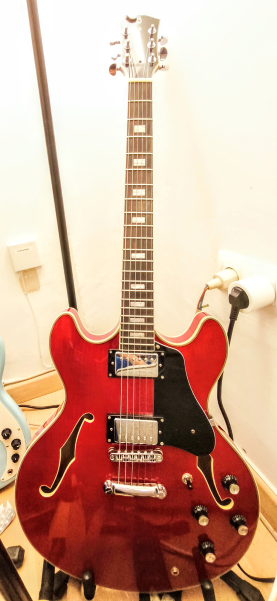 Vendo guitarra semisolida Sire H7 Larry Carlton en acabado See Through Red, en perfecto estado: