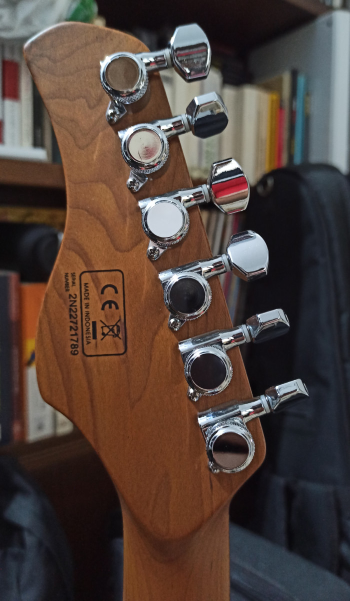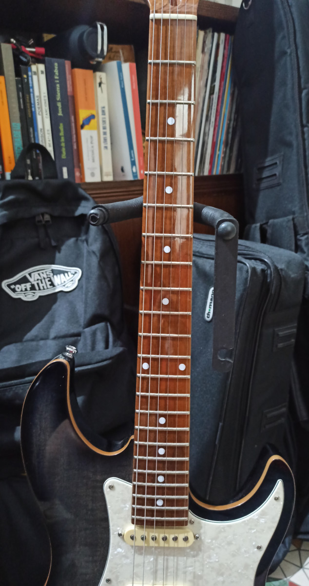 - Inlays FRETLOOK DOTS (lleva puestos los de color perla, porque los que trae de serie para mi gusto eran algo oscuretes para el color del mástil) Tiene varios colores en la cajita, por si el nuevo propietario le quiere poner otros.