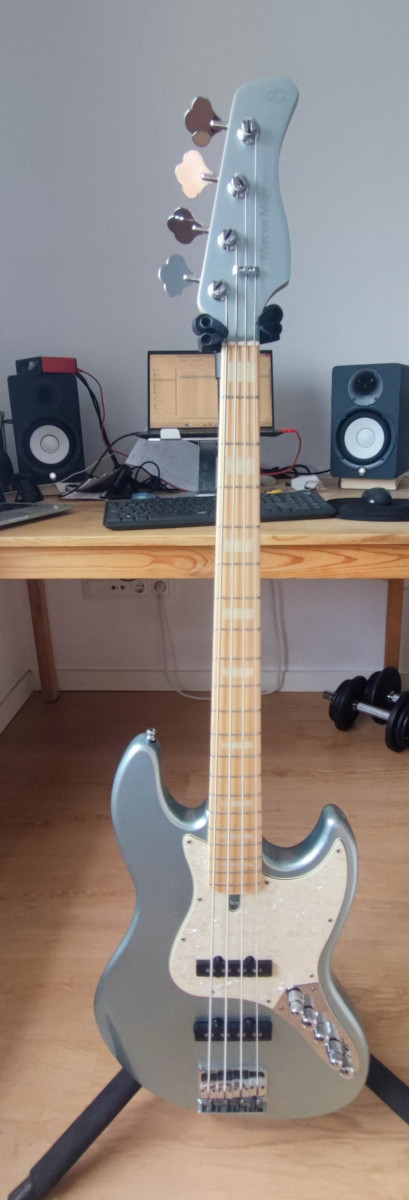 Especificaciones: Cuerpo tipo jazz bass de fresno. Mástil tipo C con diapasón en arce y radio de 9,5 . Escala de 34”. 20 trastes médium. Puente MM Heavy Mass II (con más sustancia que el habitual) Pastillas Super J Revolution y previo Heritage 3. En buen estado, mejor entrega en mano.