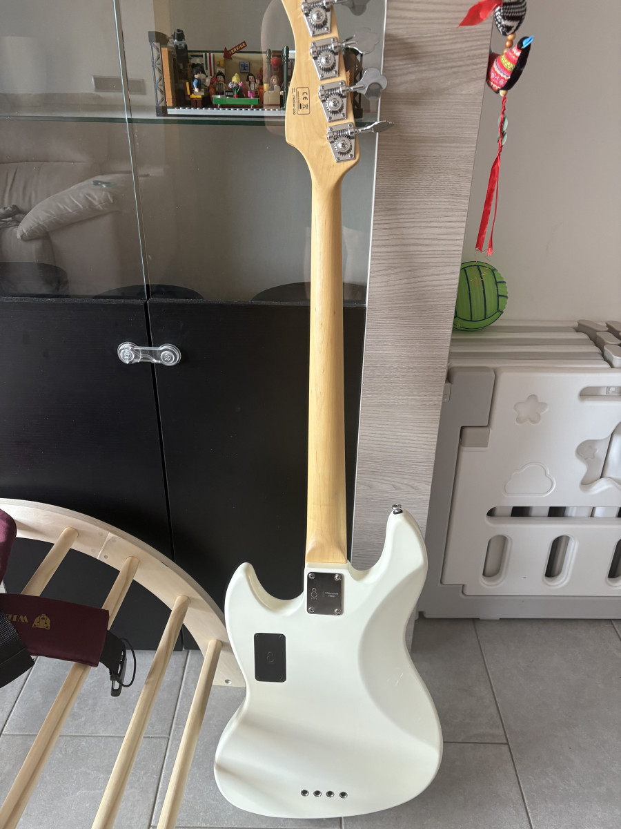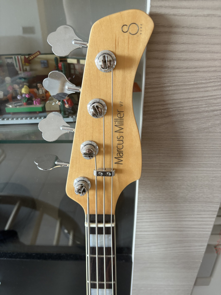 Bajo eléctrico Marcus Miller V7 de segunda generación. Cuerpo de aliso, en acabado blanco. Se encuentra en excelentes condiciones ya que soy guitarrista y la verdad es que no he encontrado tiempo de ponerme con el bajo. Lo llevé a ajustar, le puse cuerdas nuevas y ahí sigue...