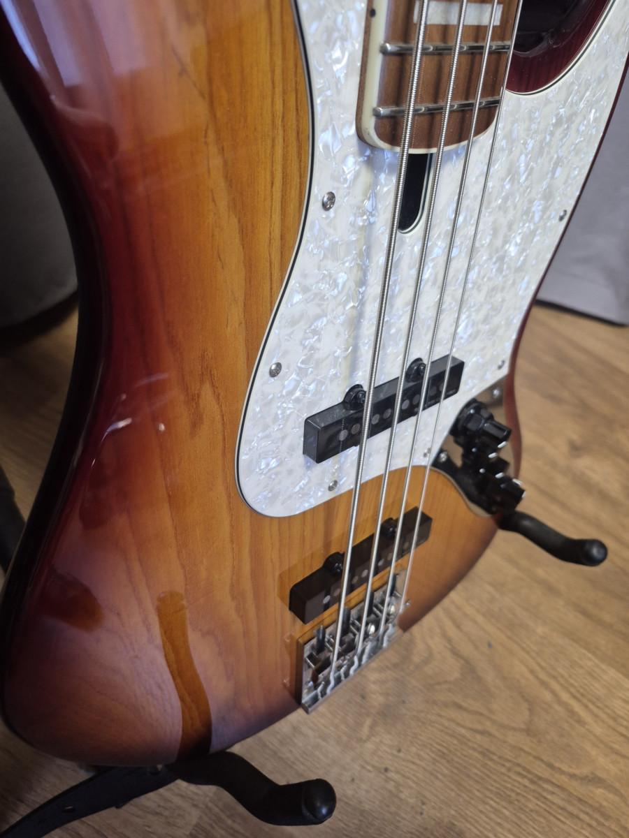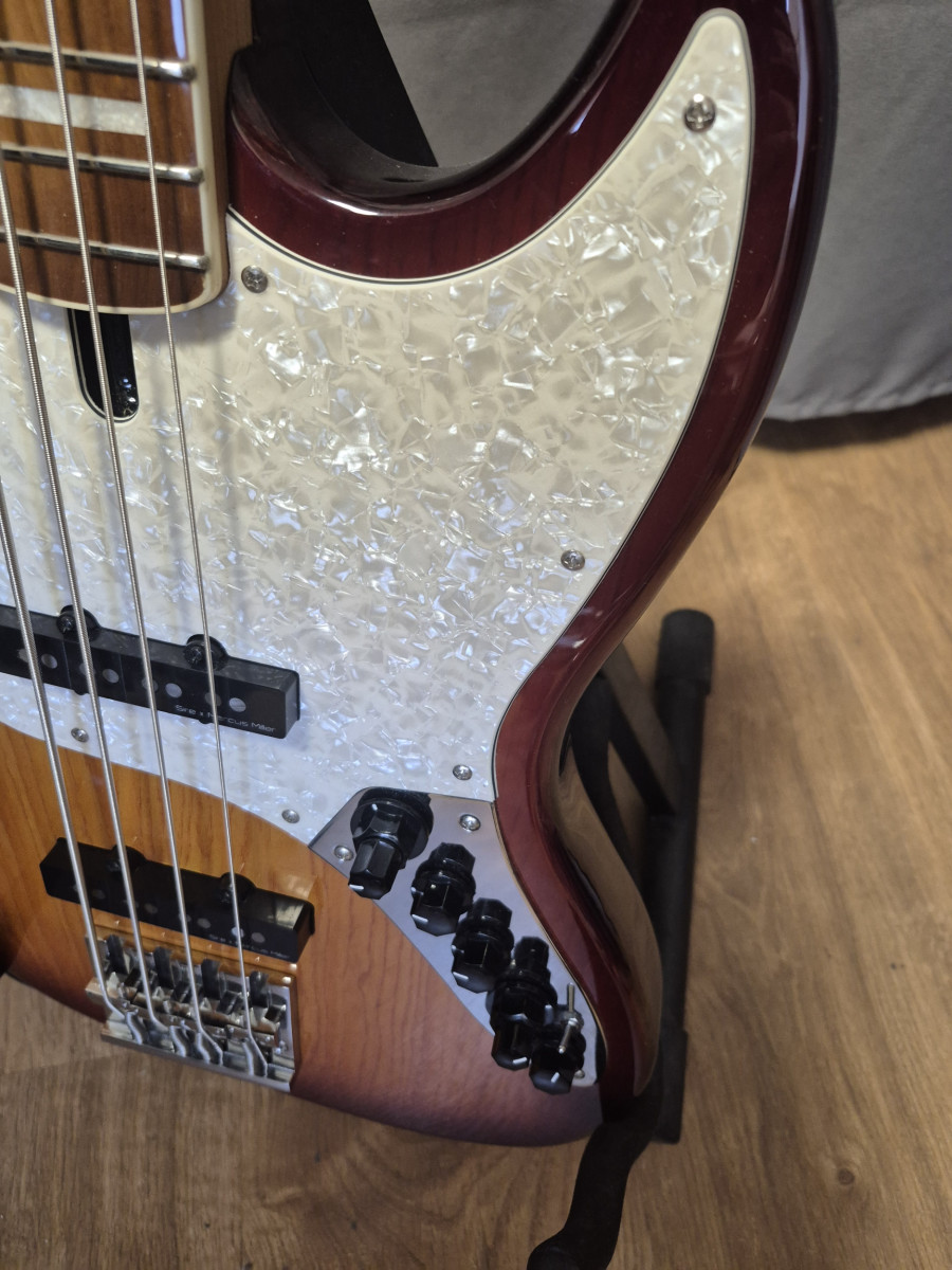 Set de pastillas Marcus Super J. Revolution, Electrónica, preamplificador Marcus Heritage-3 con control de frecuencia de medios, Controles de Volumen/Tono, Control de mezcla de pastillas, Controles de agudos, frecuencia de medios/medios (potenciómetro dual) y graves, Interruptor mini de palanca (activo/pasivo), Color: Tobacco Sunburst, Incluye funda de las buenas tipo mono de la marca y su documentacion.