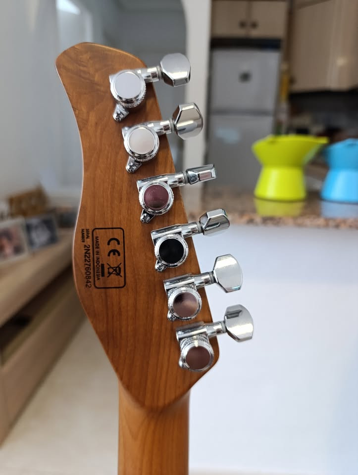 Dedo de arce tostado con trastes redondeados para mayor comodidad.
