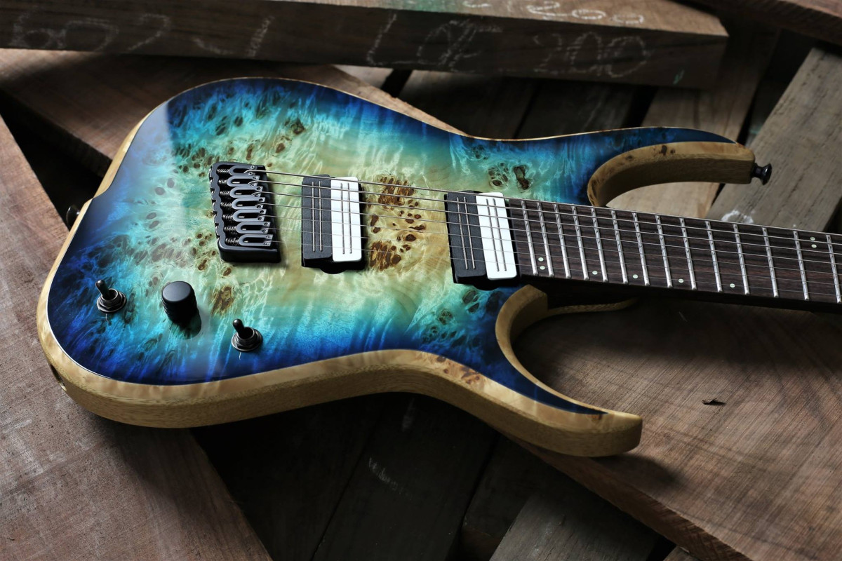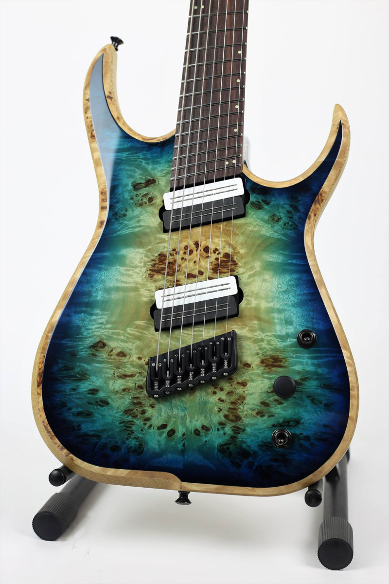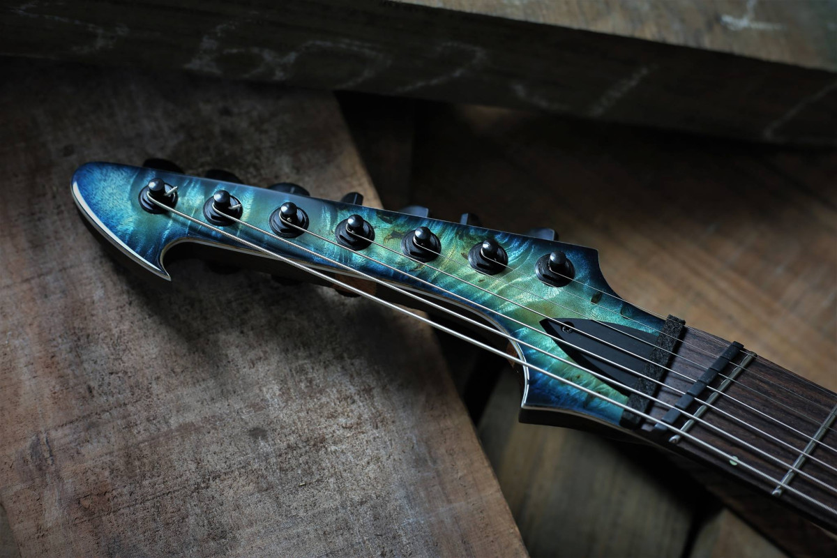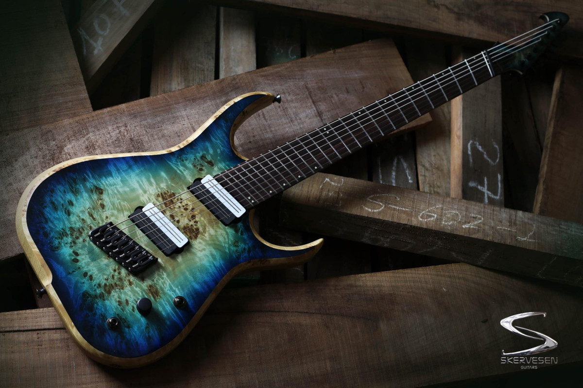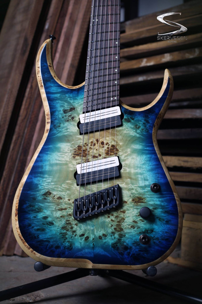 Pongo en venta una de mis Skervesen Raptor de 7 cuerdas fanned frets (multiescala), en un acabado espectacular Laguna Burst, que en mis fotos sale horriblemente mal, por lo que incluyo alguna de las tomadas por los fotografos profesionales de Skervesen.
