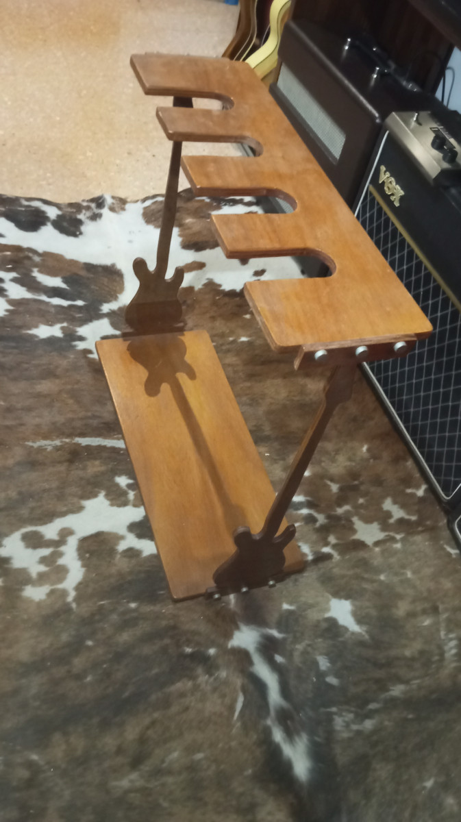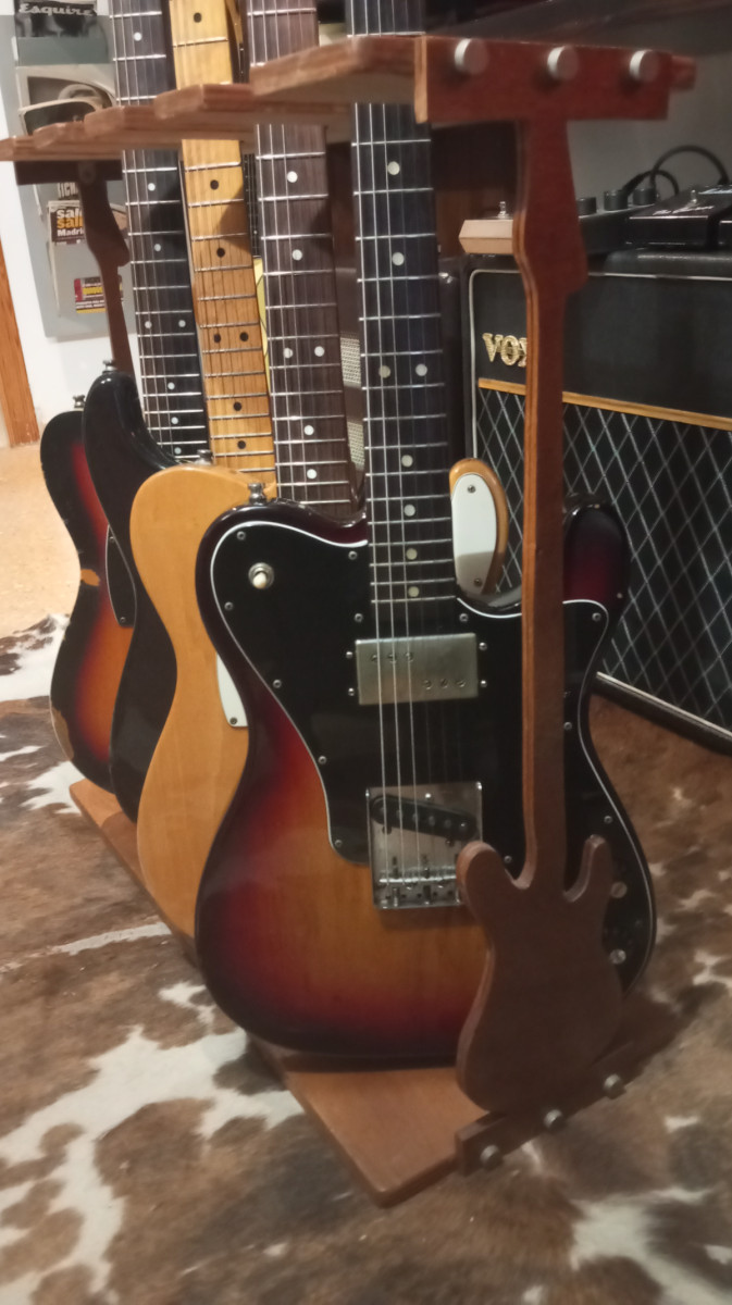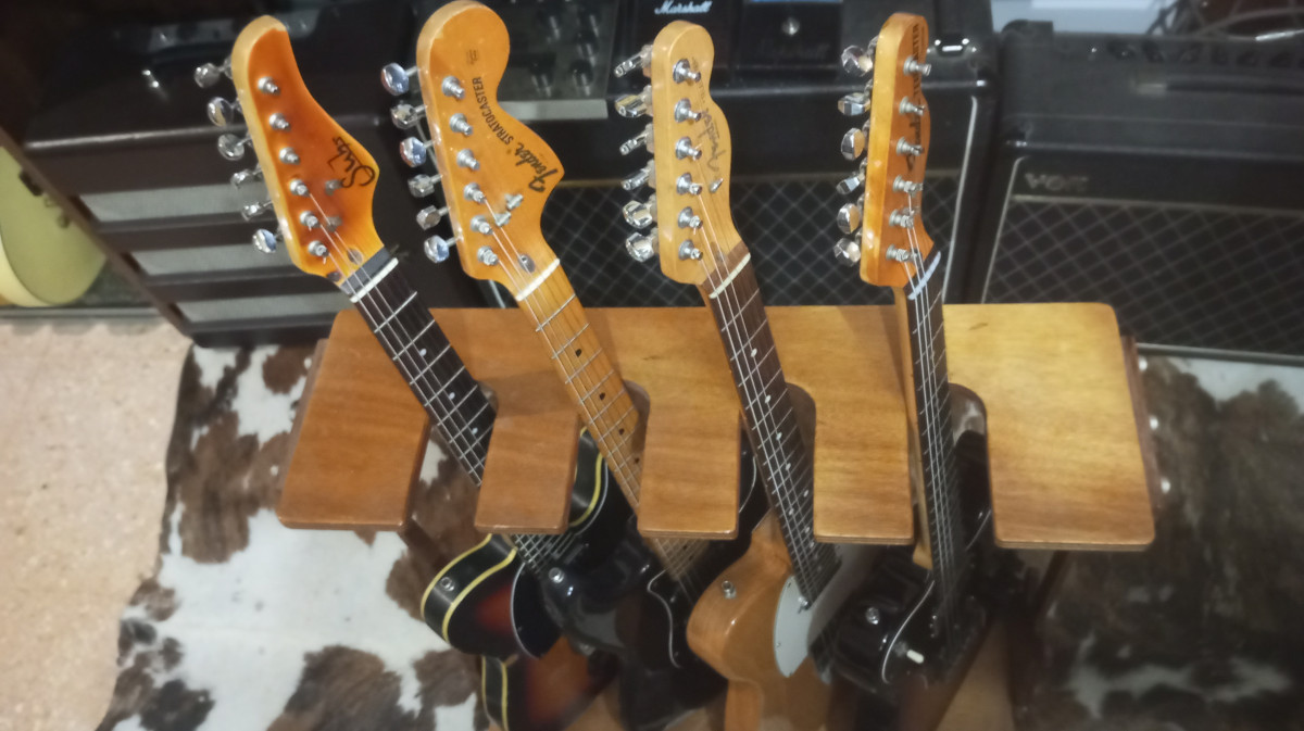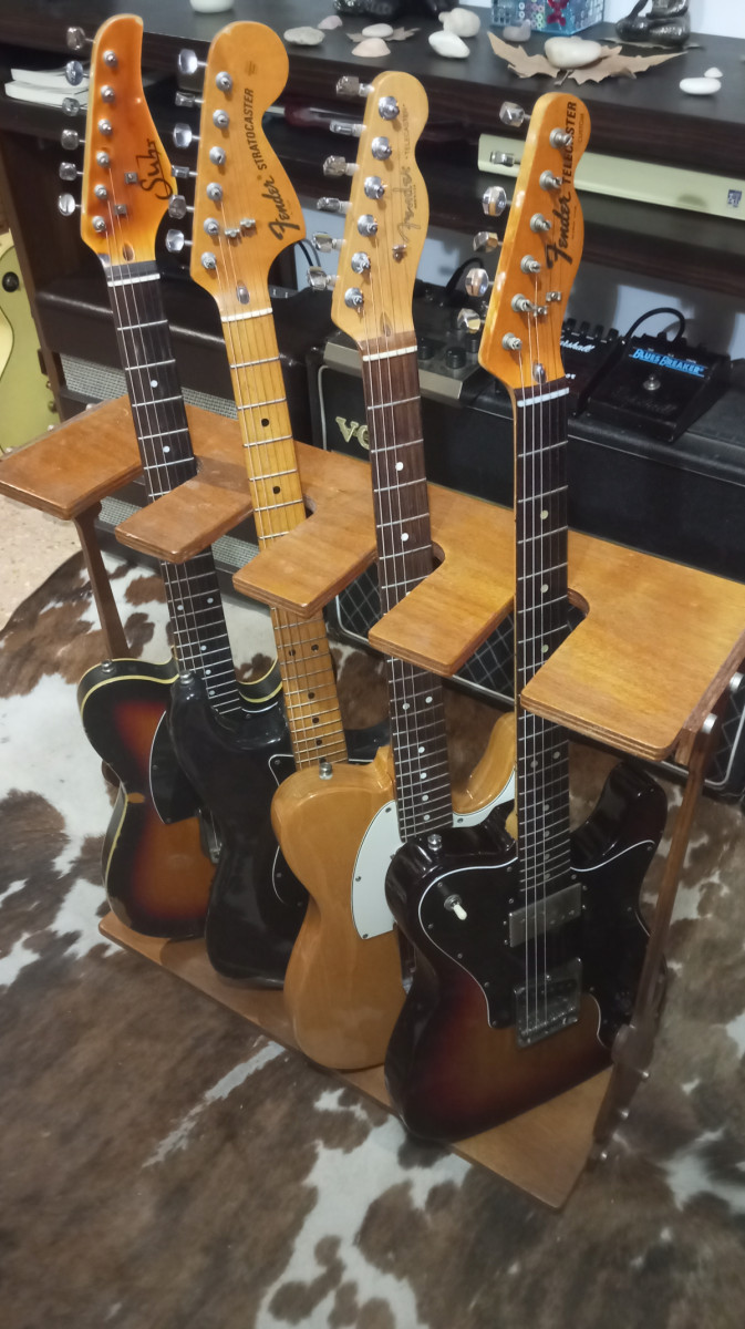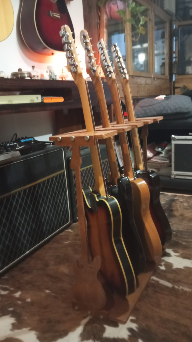 Soporte de Luthier en madera para 4 guitarras, hecho a mano, para casa está espectacular.