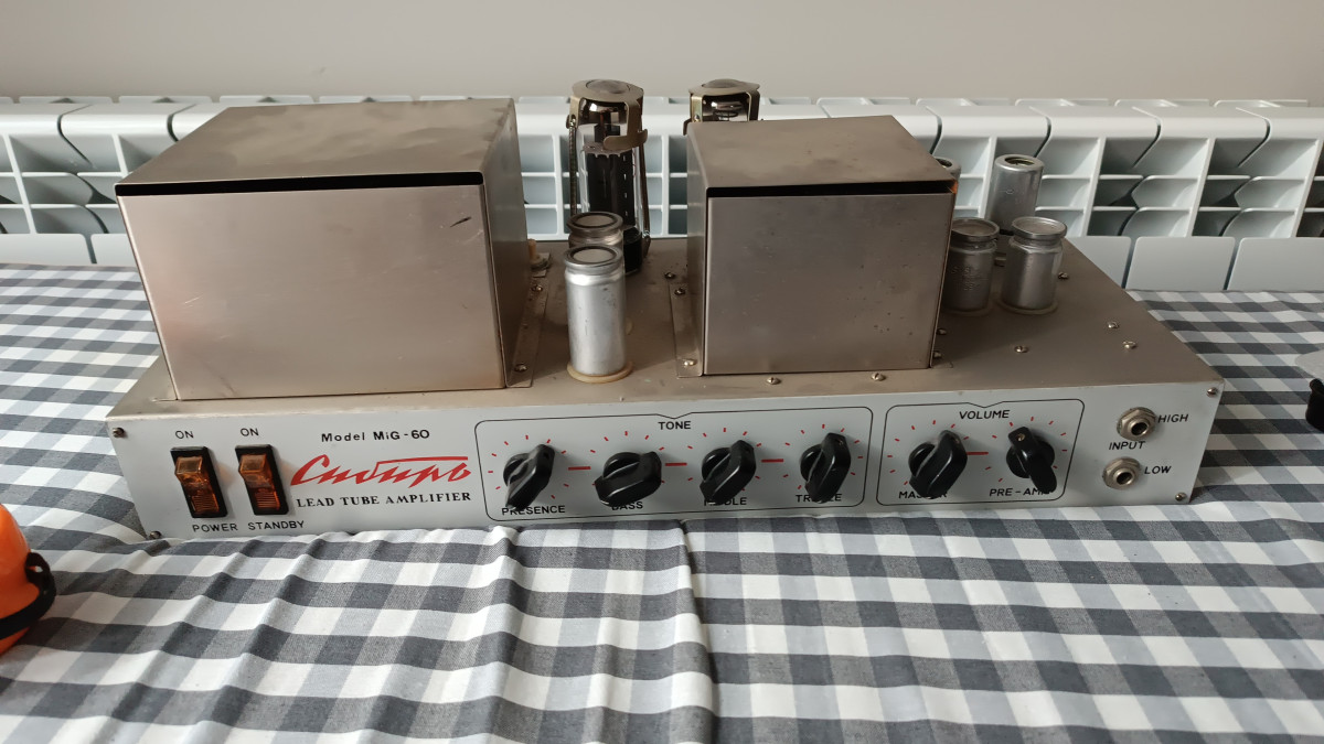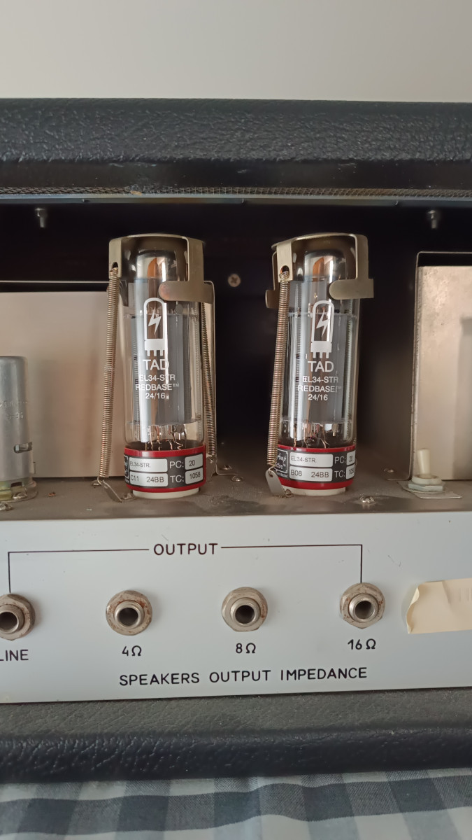 Sovtek Mig60, cabezal de 60W, con 2 El34 TAD Red Base recién puestas.