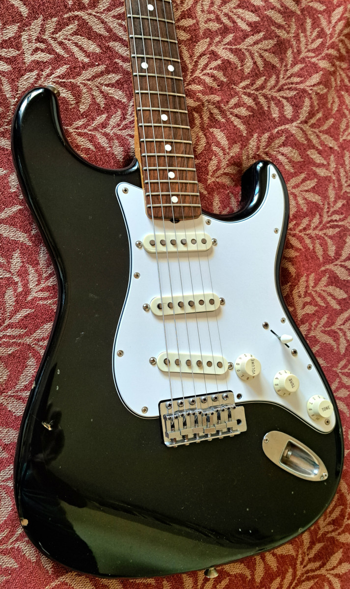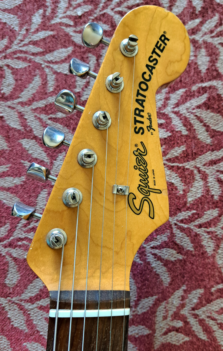 Fender Squier JV Japan Stratocaster fabricada sólo entre 1982 y 1984 en Japón como una réplica perfecta de las guitarras Fender de los años 60. Tan perfectas que Fender decidió dejar de fabricarlas porque estaban mejor hechas que las estadounidenses. Esta guitarra es de enero de 1984 con pastillas originales Fullerton black botton made in USA.