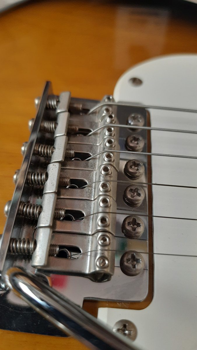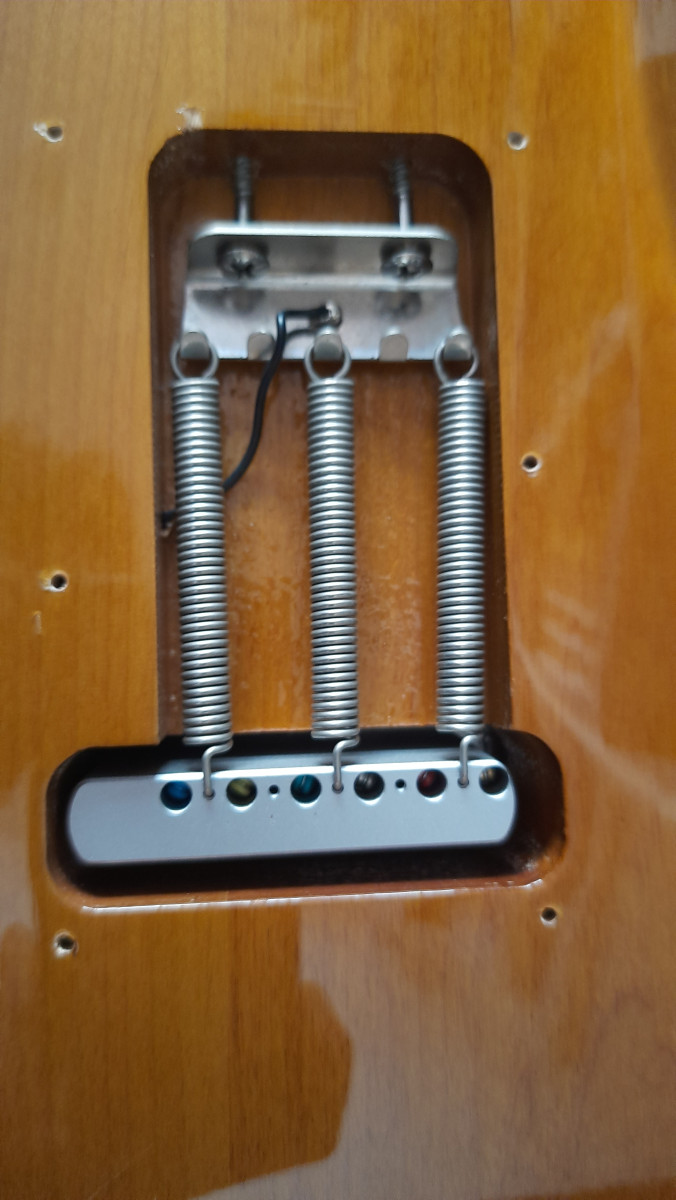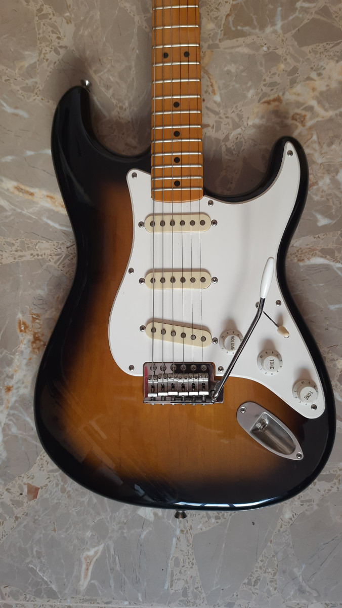 Bloque de puente cambiado por uno macizo de acero, clavijas wilkinso y condensador orange drop de 0,1. La guitarra suena a strato vintage y se toca perfectamente, precio no negociable