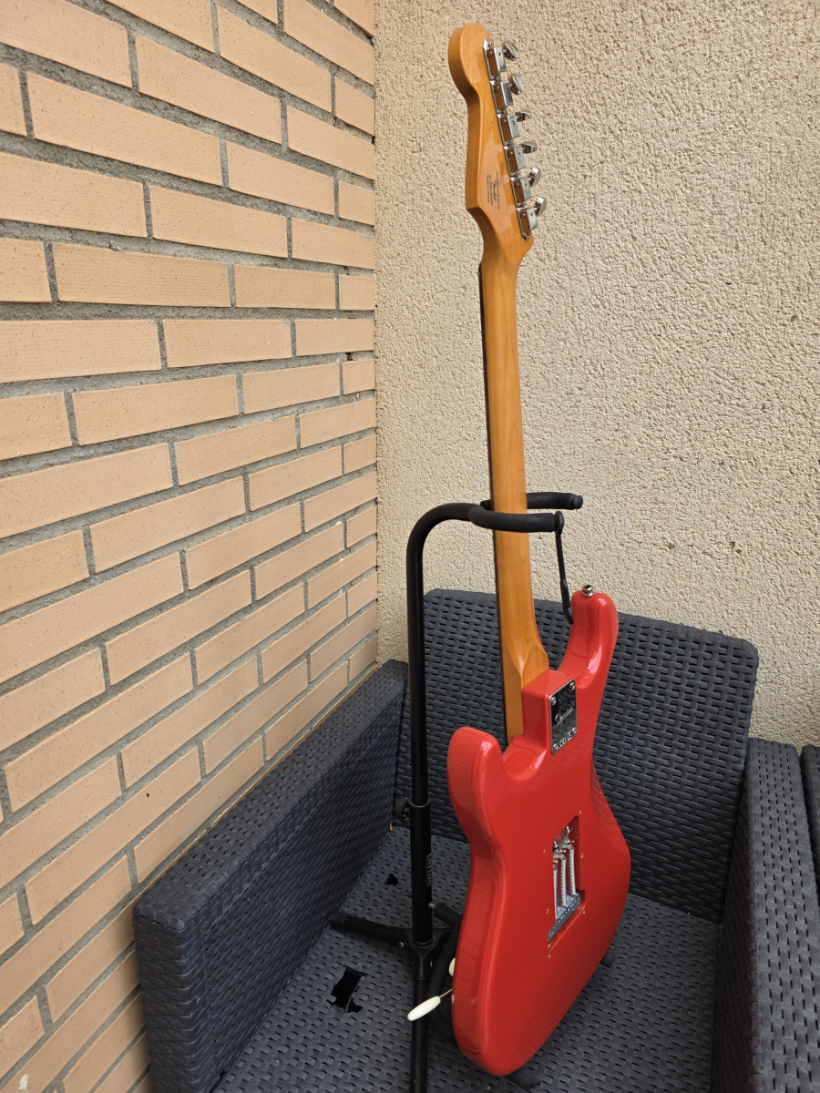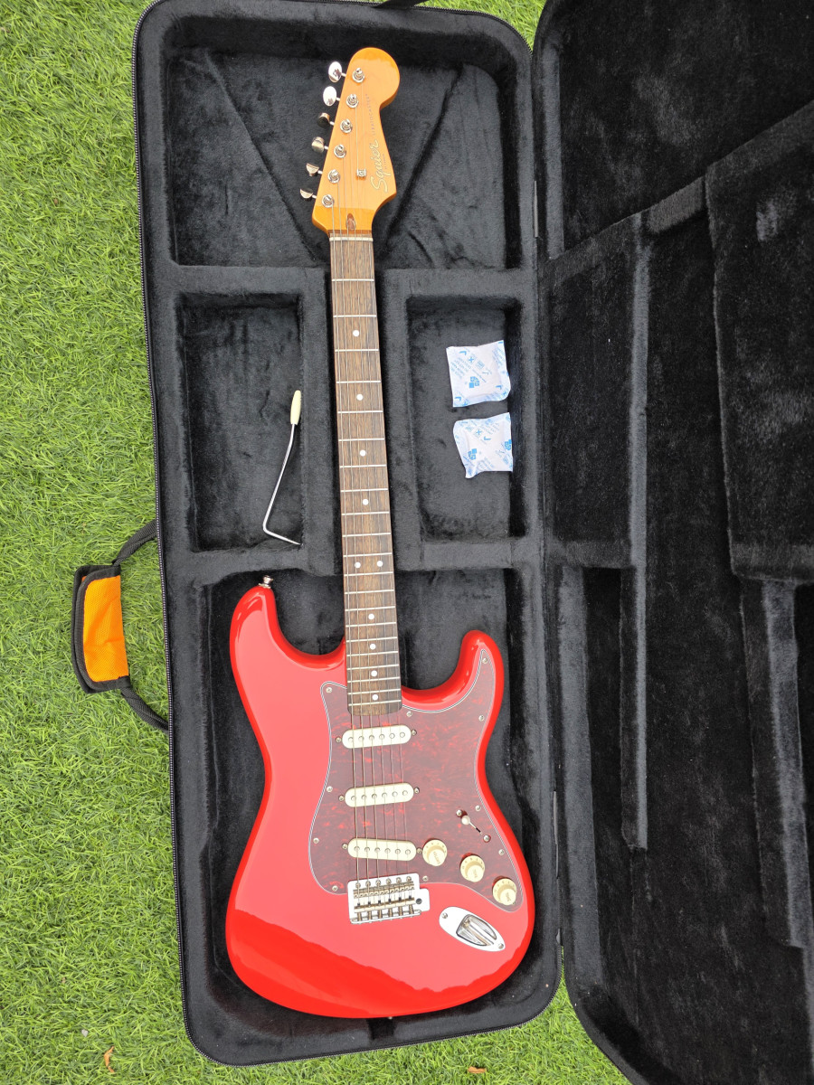 Guitarra eléctrica Stratocaster Squier(by Fender) Classic Vibe FSR 60's Fiesta Red, Estuche semirigido (50€ mas con estuche, no se envia sin estuche), resistente y ligero con asa y tirantes para transporte.