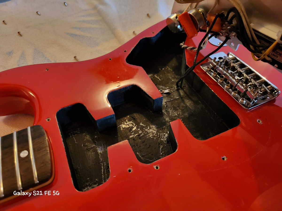 -Golpeador Tortuga rojo,también en la tapa del tremolo.
