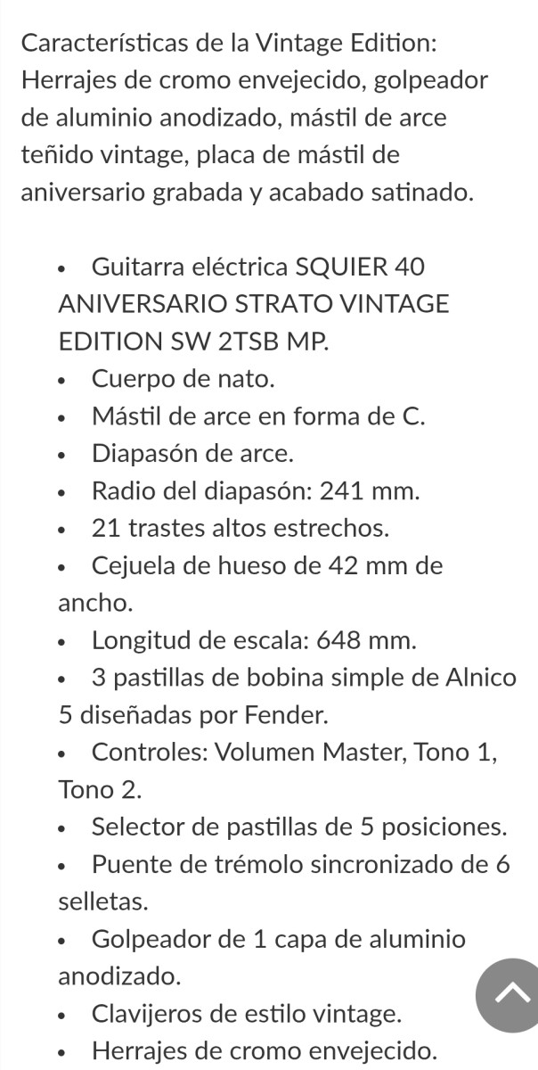 Este anuncio "SQUIER 40TH aniversario vintage" está clasificado en la categoría Guitarras.