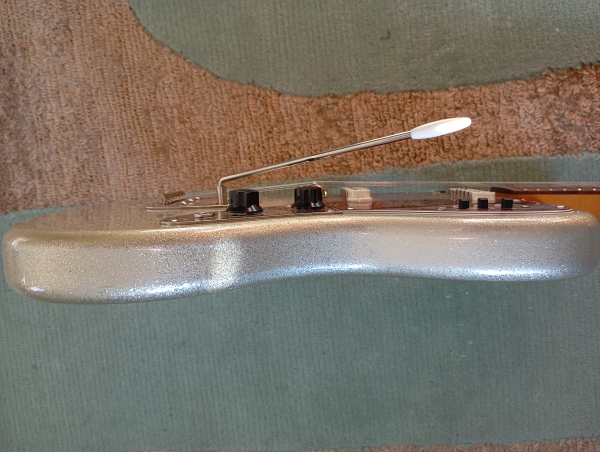 Edición limitada de color silver sparkle. Está en perfecto estado y lleva cuerdas planas Ernie Ball.