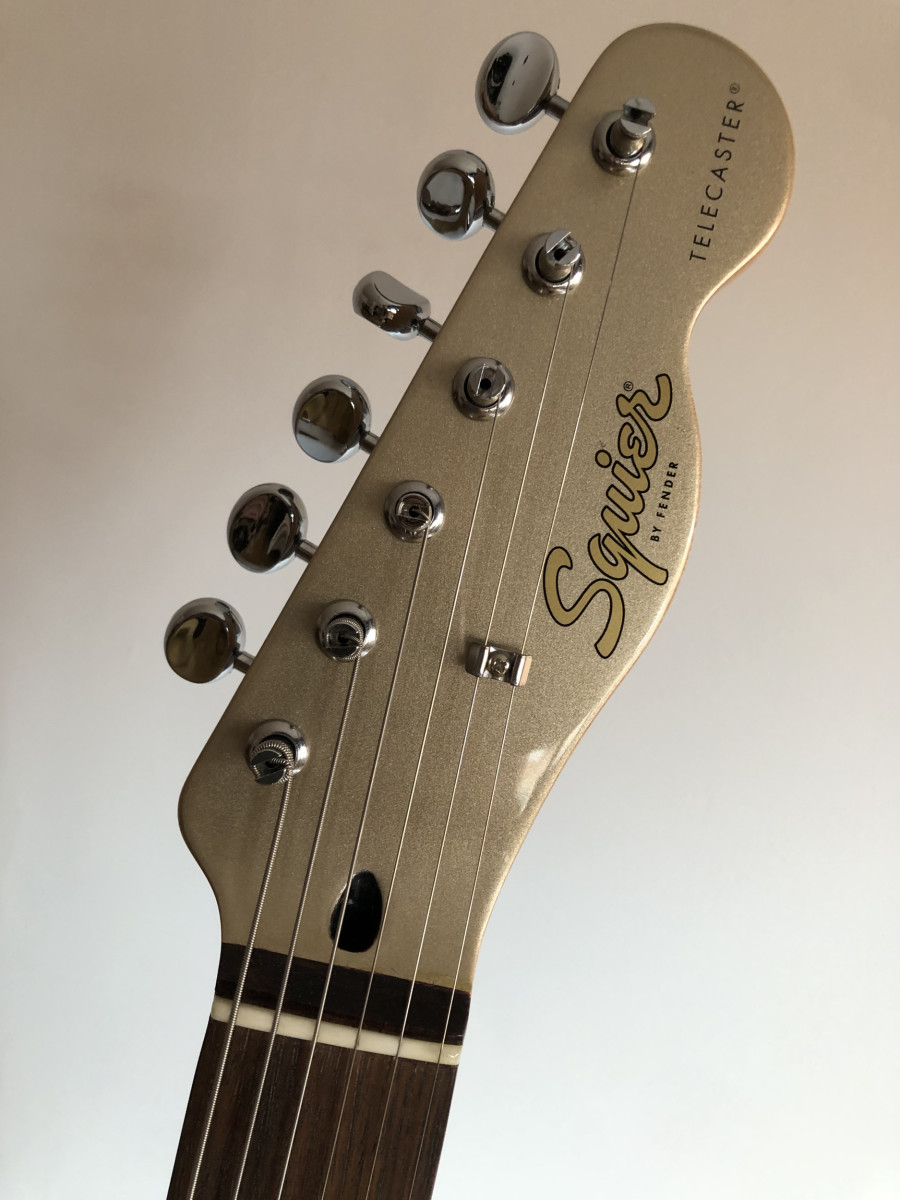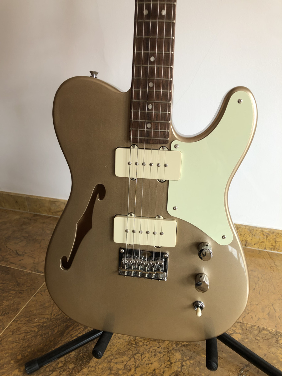 Squier FSR Paranormal Cabronita Tele Thinline en acabado shorrline gold Shoreline Gold.