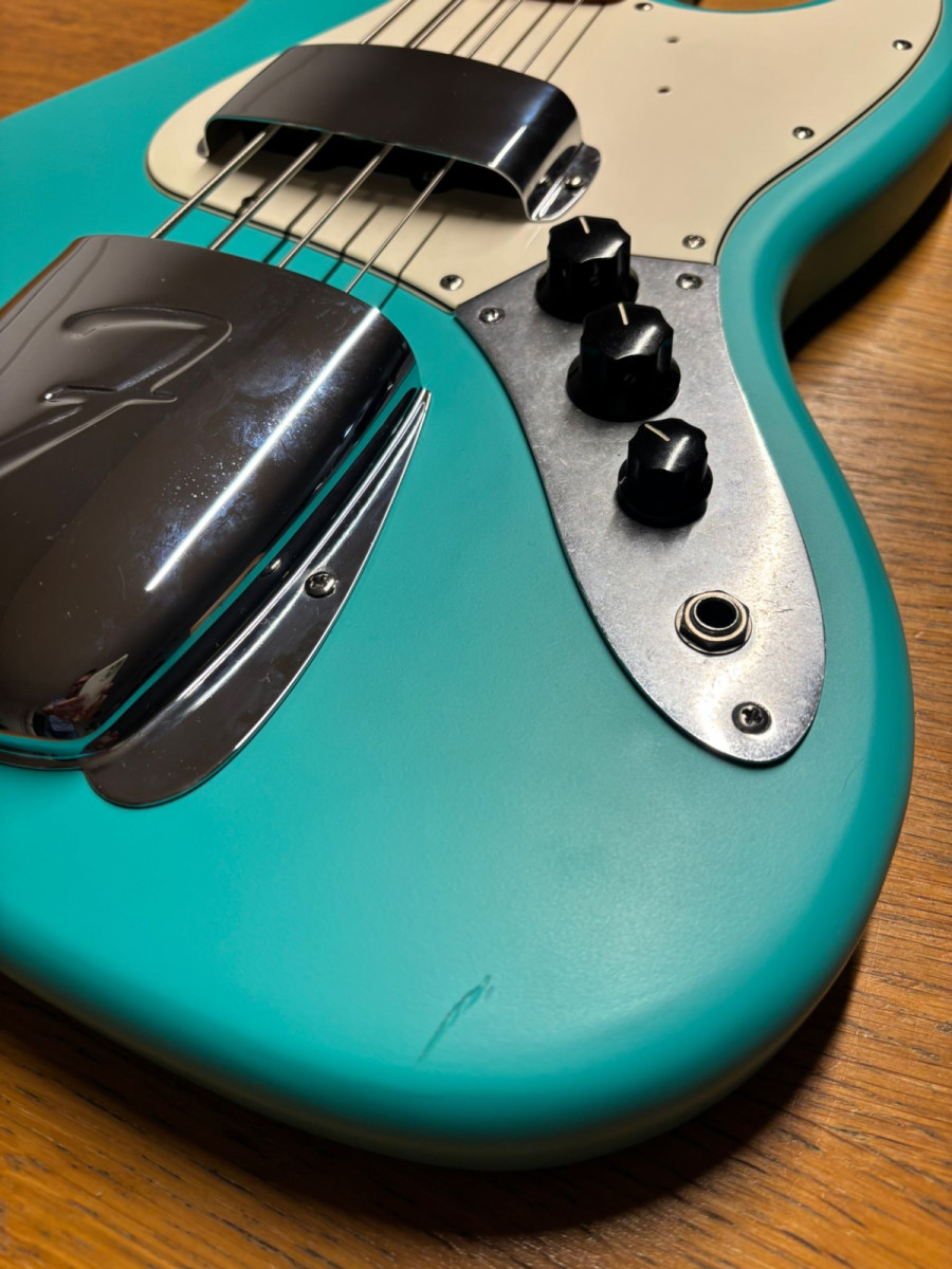 Electrónica TAD, apantallamiento de cavidades de pastillas, puente Fender Jazz Bass USA. Set de pickup cover original USA. Pickguard USA original. Quintado, ajuste de cejilla y pulido de trastes por luthier Ricardo Luri. Cuerdas nuevas Ernie Ball 45-105. Se entrega con pickguard anodizado gold original y funda.