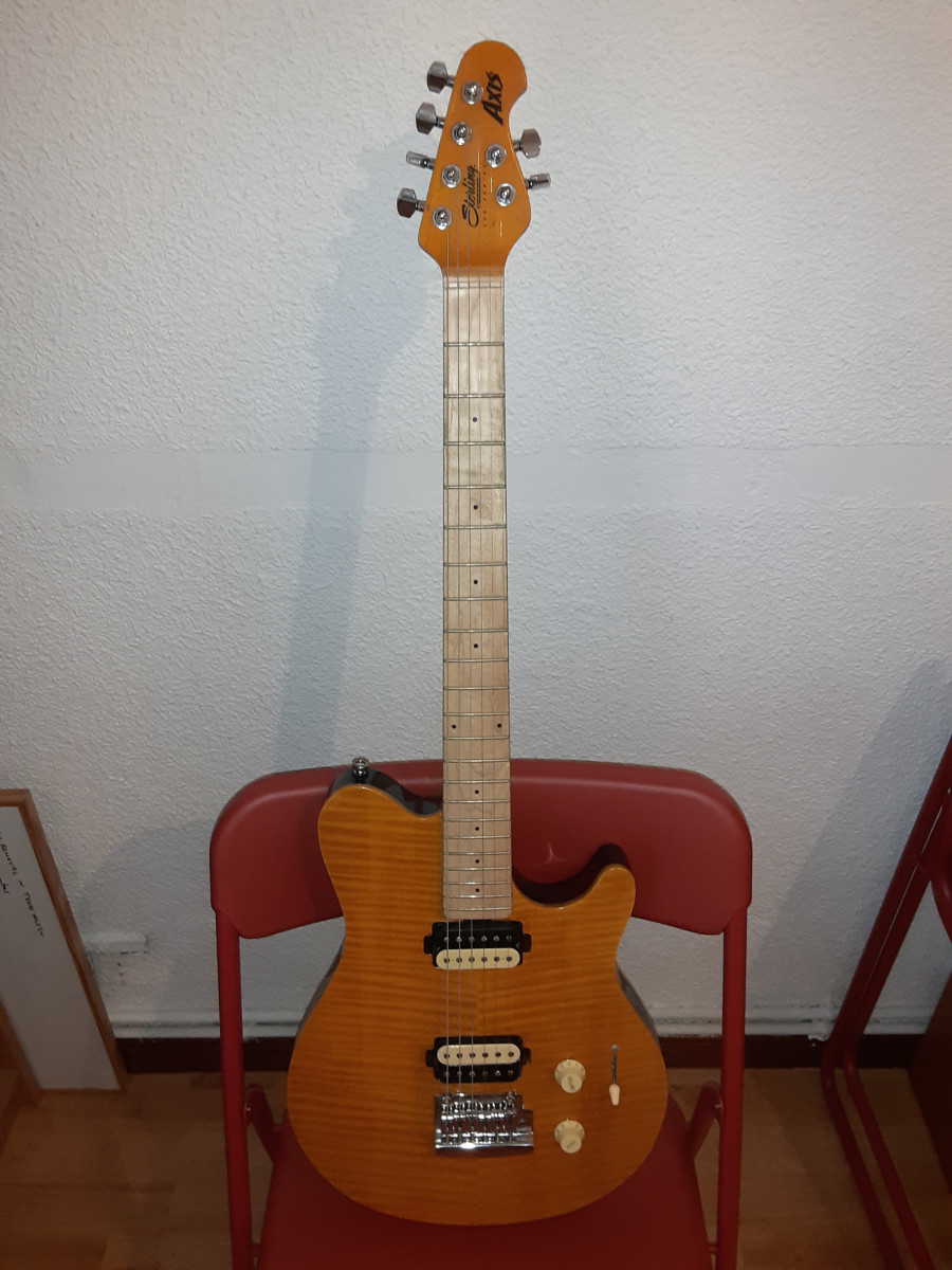 Sterling Axis comprada en Madrid Hi-Fi en noviembre de 2022. Está casi nueva, sólo tiene un par de conciertos. Se puede ver y probar en Villaverde. En principio no quiero cambios, pero puestos a negociar buscaría algo Les Paul (Tokai, Edwards, Epiphone) o alguna acústica (Sigma, Lag, Fender, Taylor).