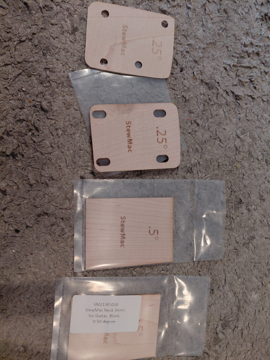 Dos neck shims de Stewmac de 0.5 sin abrir.