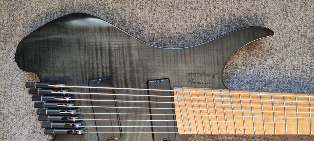 Tope gama en 8 cuerdas en cuanto a maderas antes del cambio de nombres y maderas en las distintas gamas Strandberg. Por debajo en precio estaban las gama metal o standard, sin cámaras y con otras maderas.