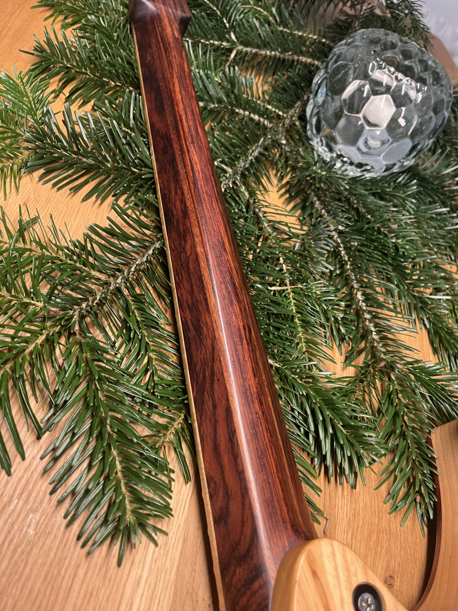Mástil de cocobolo, madera tropical de altísima gama con diapasón de ojo de pájaro brutal.