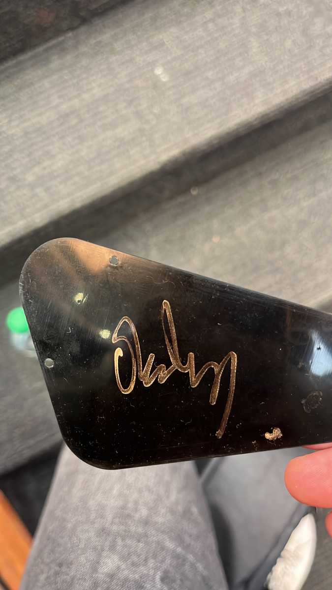 Monta unas pastillas Bare Knuckle Rebel Yell envejecidas… el modelo signature de Steve Stevens, lo cual le da un sonido ochentero tremendo. Además de que la tapa trasera está firmada por el mismísimo Ola Strandberg.