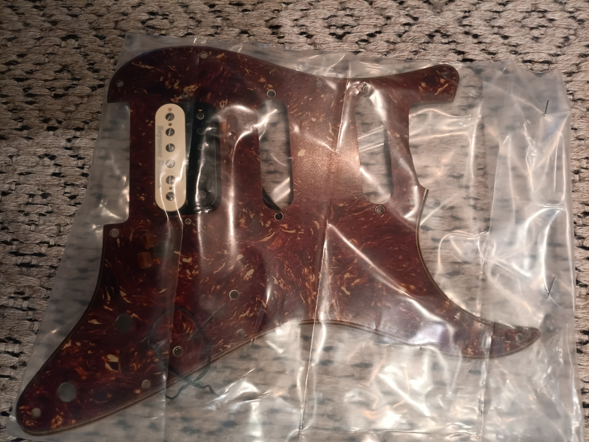 Es esta exactamente. Actualmente lleva una texas en puente con golpeador mint; pero por supuesto se entregan el golpeador tortoise y la pastilla zebra originales.