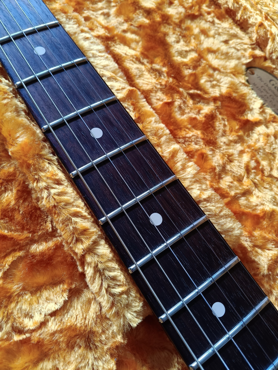 Pastillas ancho poblano, trastes jumbo, radio 9.5...