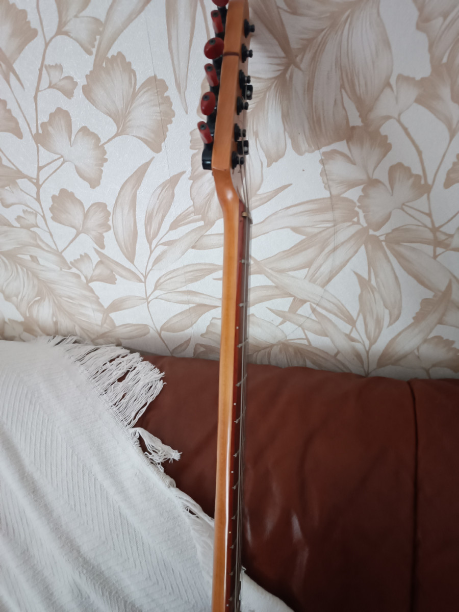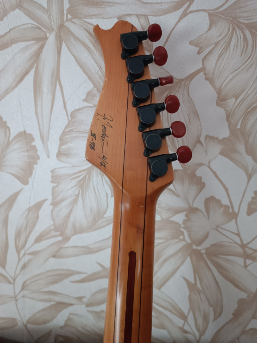 Strat modelo DAMA del luthier Francesc Jorda) maderas seleccionadas,cuerpo caoba,mástil fino tres piezas con fileteados,clavijero bloqueo,cejuela metálica, diapasón palorosa, pastillas Fender CS 60 (son pastillas de poca señal,mirar especificaciones en web,pot CTS,puente wilkinson...no tiene desperdicio la comodidad y el sonido que saca,muy auténtico ,maleta rígida rectangular,no recuerdo el año de fabricación 90's.