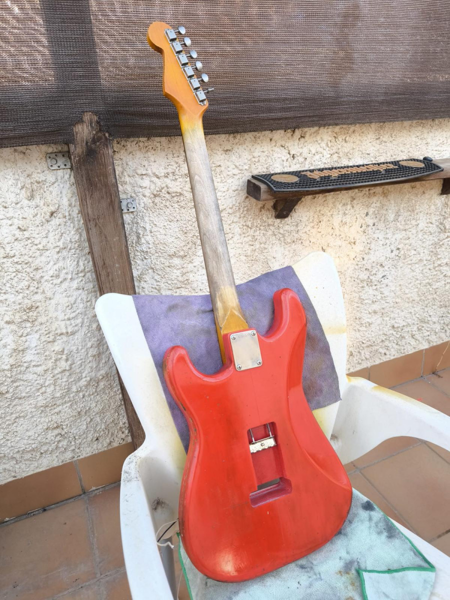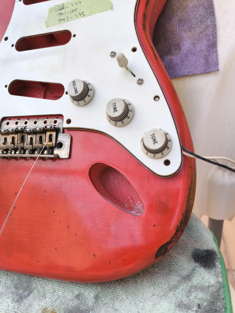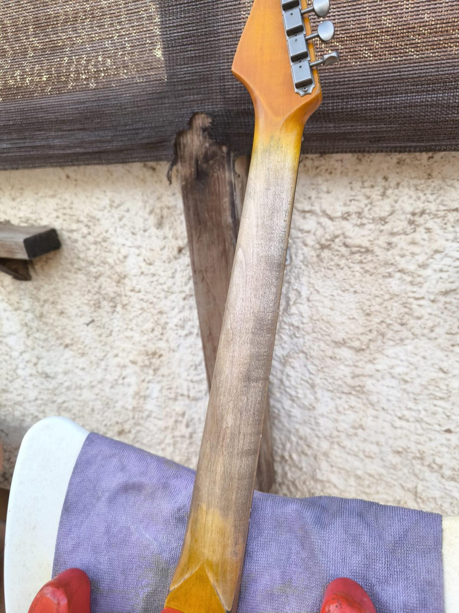 Acabado en nitrocelulosa laquer aged.