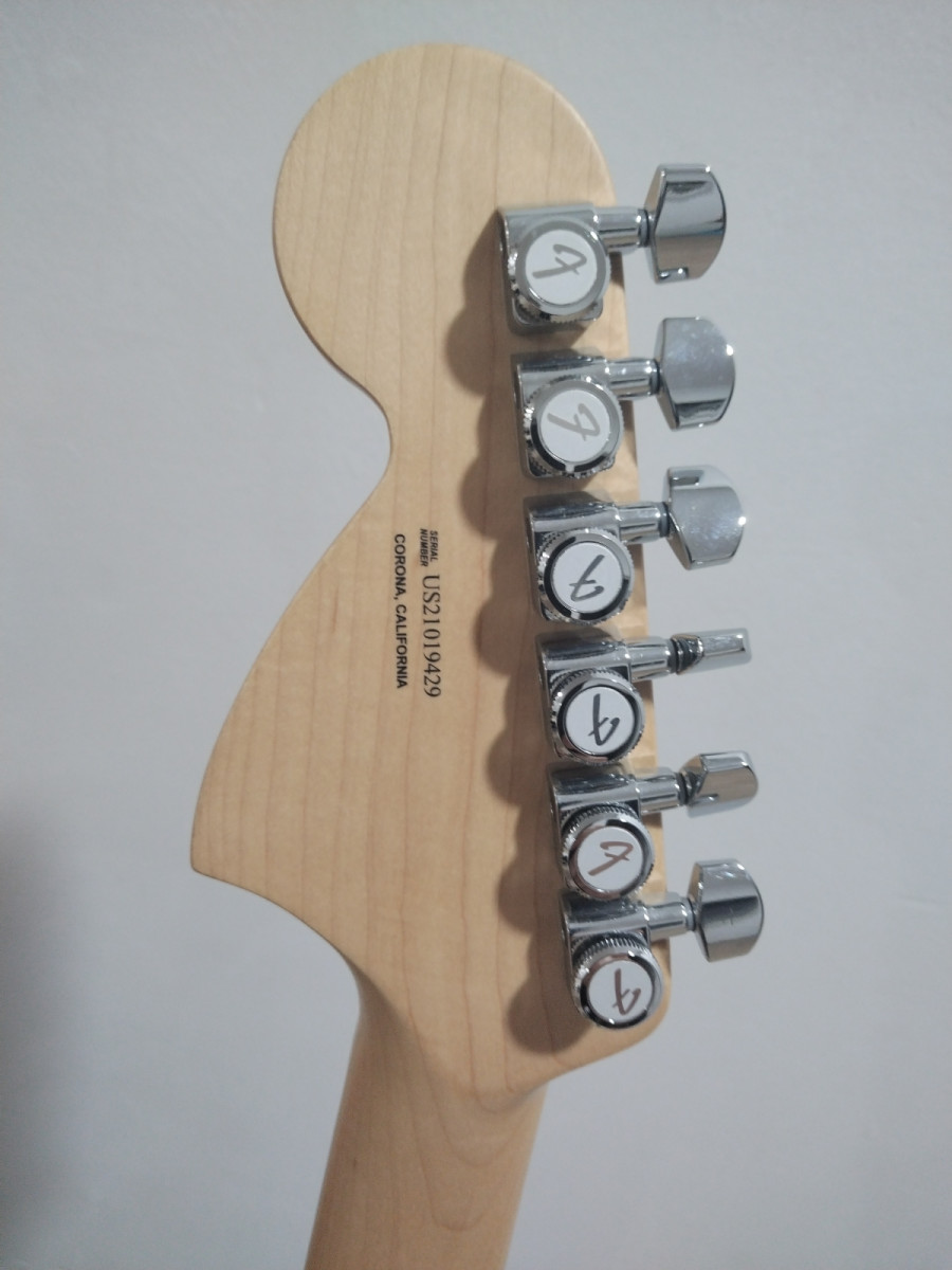 Strato del 2023. Modificada con Shur pickups. SSV en el puente v60 lp en neck y medio. Dos tonos un volumen.