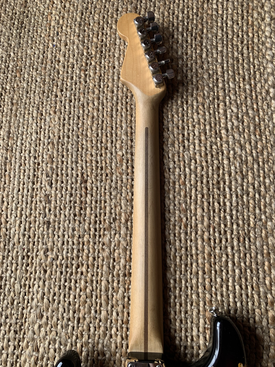 - El mástil lo lijé porque no me convencía el acabado, en la pala se puede apreciar el original.