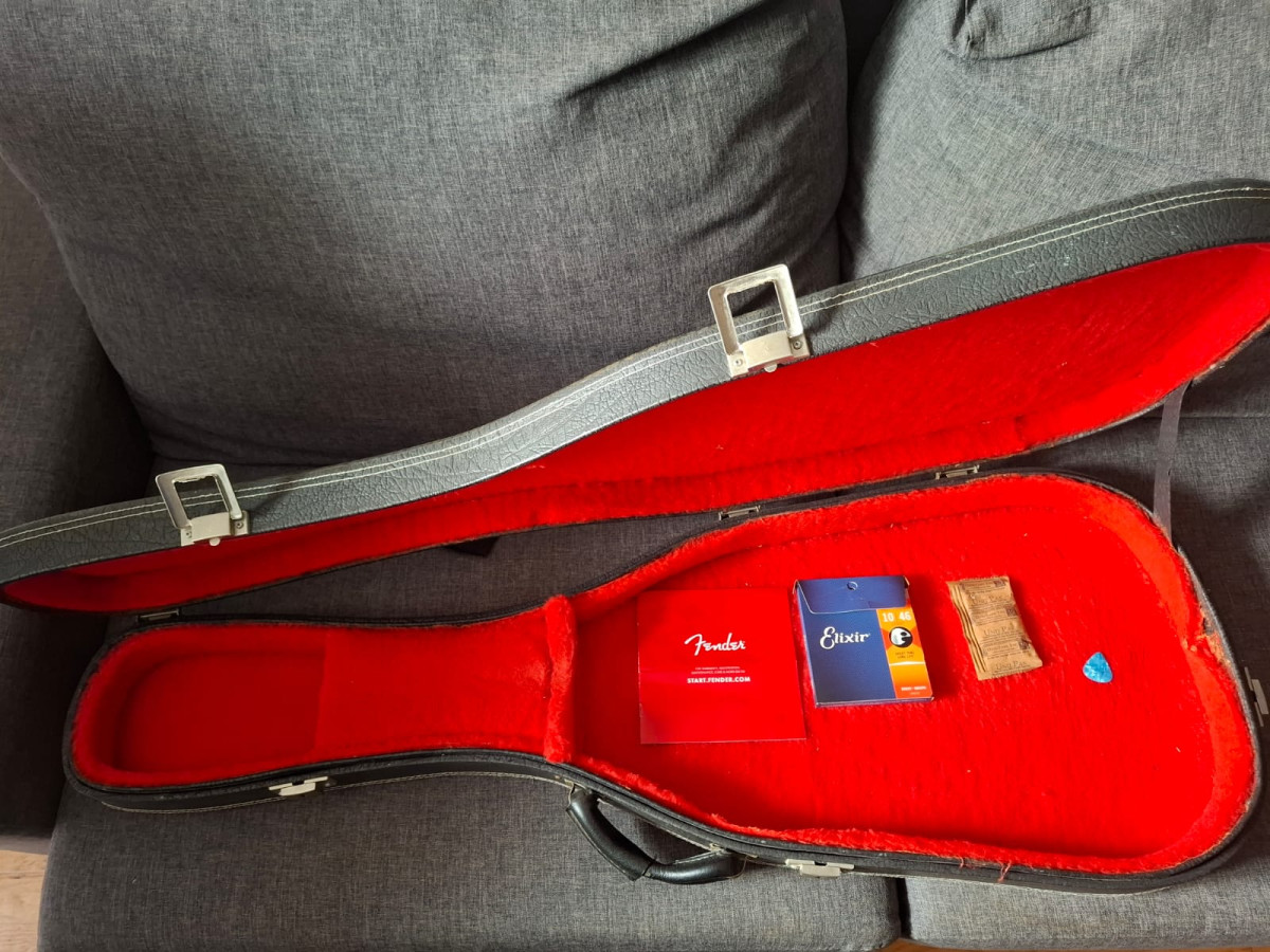 Se incluye maleta Squire de los 80 y dos cables Fender