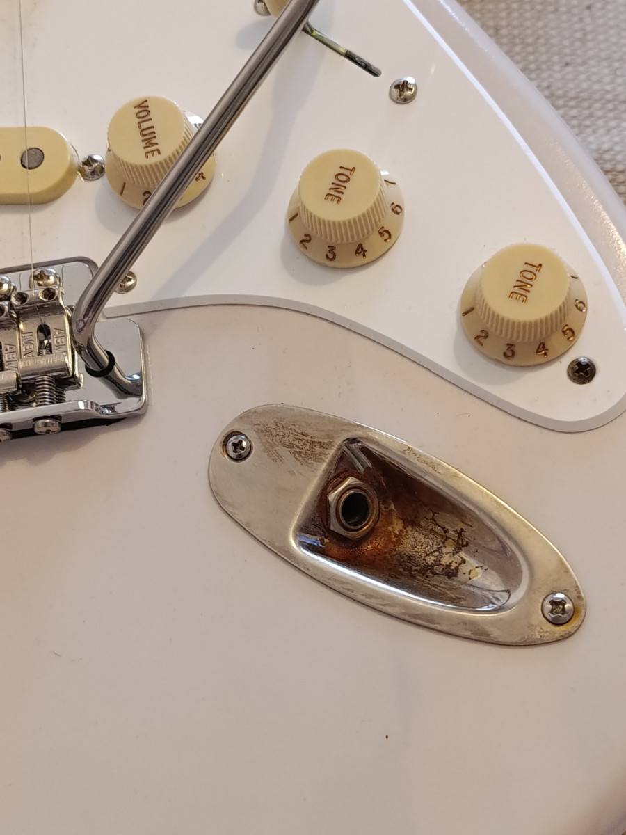 Stratocaster montada con mástil Fender classic 50 ,radio 7'25, trastes vintage perfectos.Cuerpo de pino procedente de una Squier CV 50 Stratocaster, relacado en Nitro. Puente Fender Original de bloque gordo (52'5) .Golpeador completo (pastillas, electrónica...)de una Fender Vintera 70. Solo envío por correos previo pago.Para cualquier cosa no dudéis en contactar.
