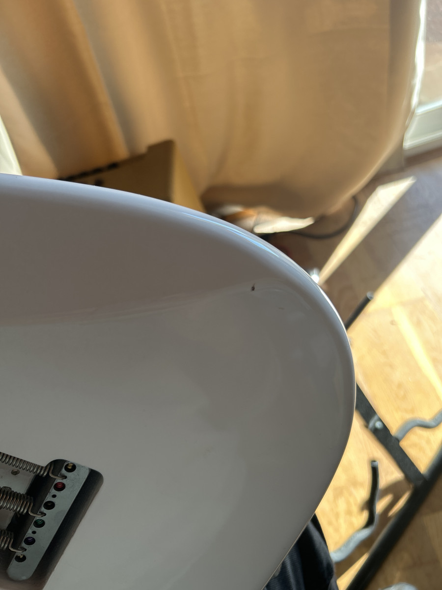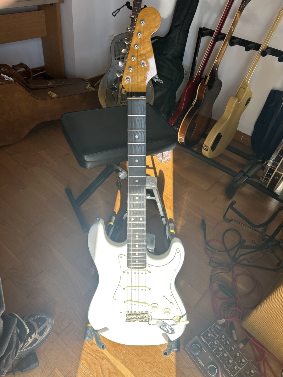- mástil Warmoth birdseye maple Triple A, diapasón ébano, radio 9,5, trastes acero perfectamente nivelados, pickguard mint