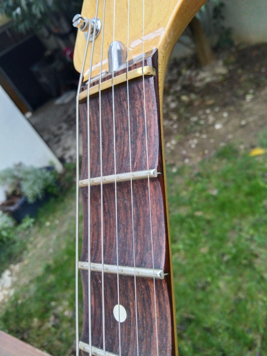La guitarra está perfecta salvo un pequeño toque sin importancia en la parte de arriba del cuerpo.
