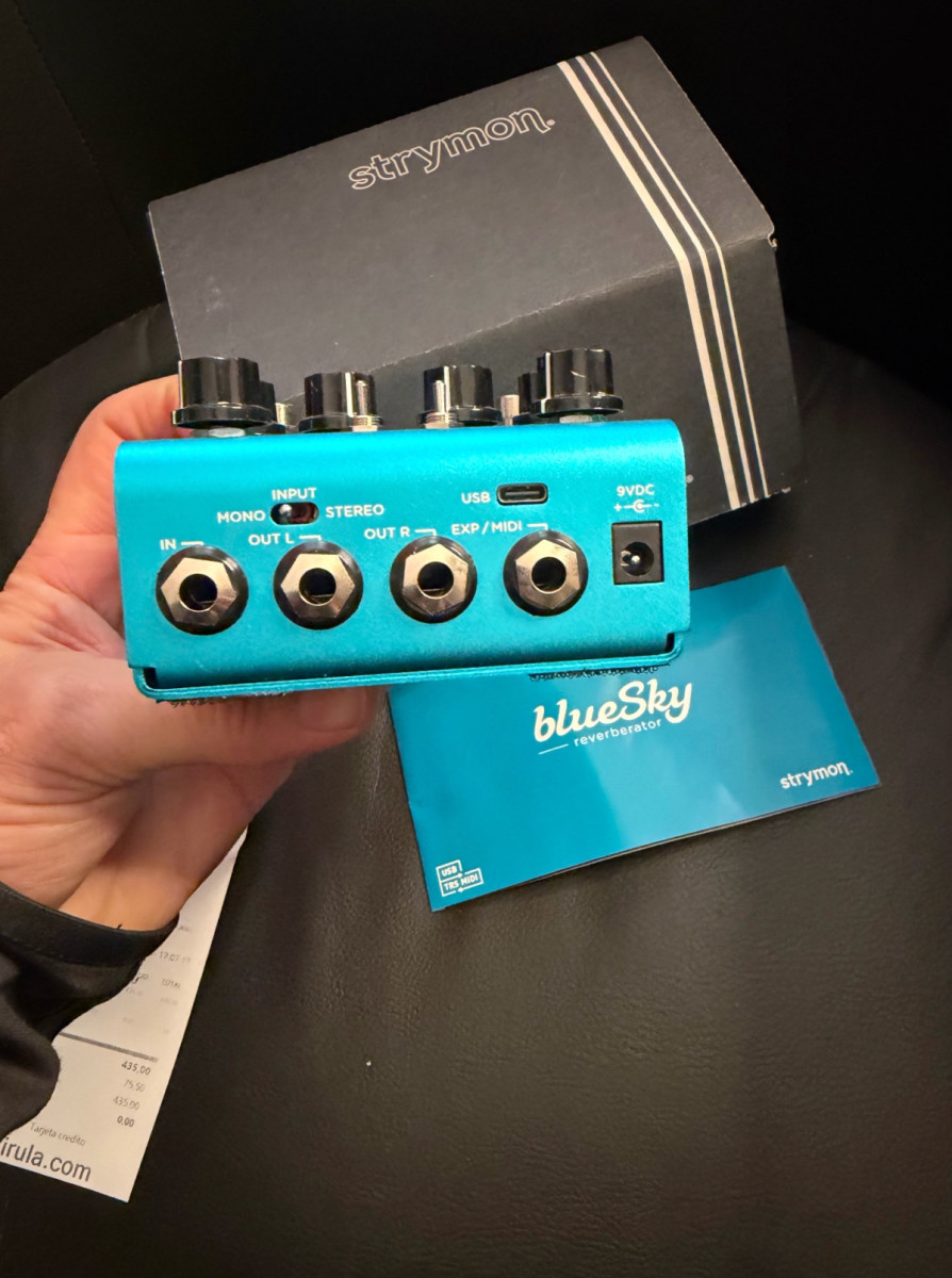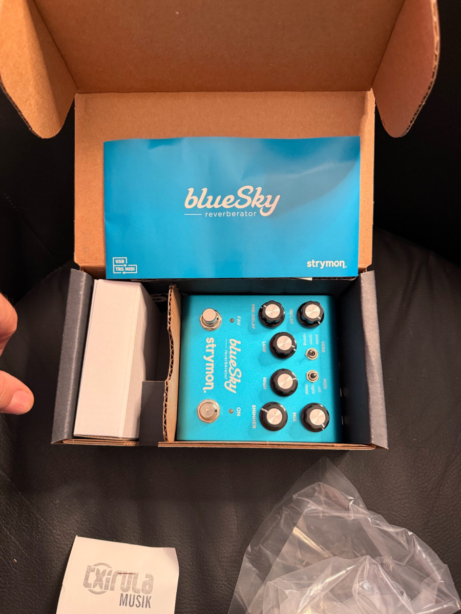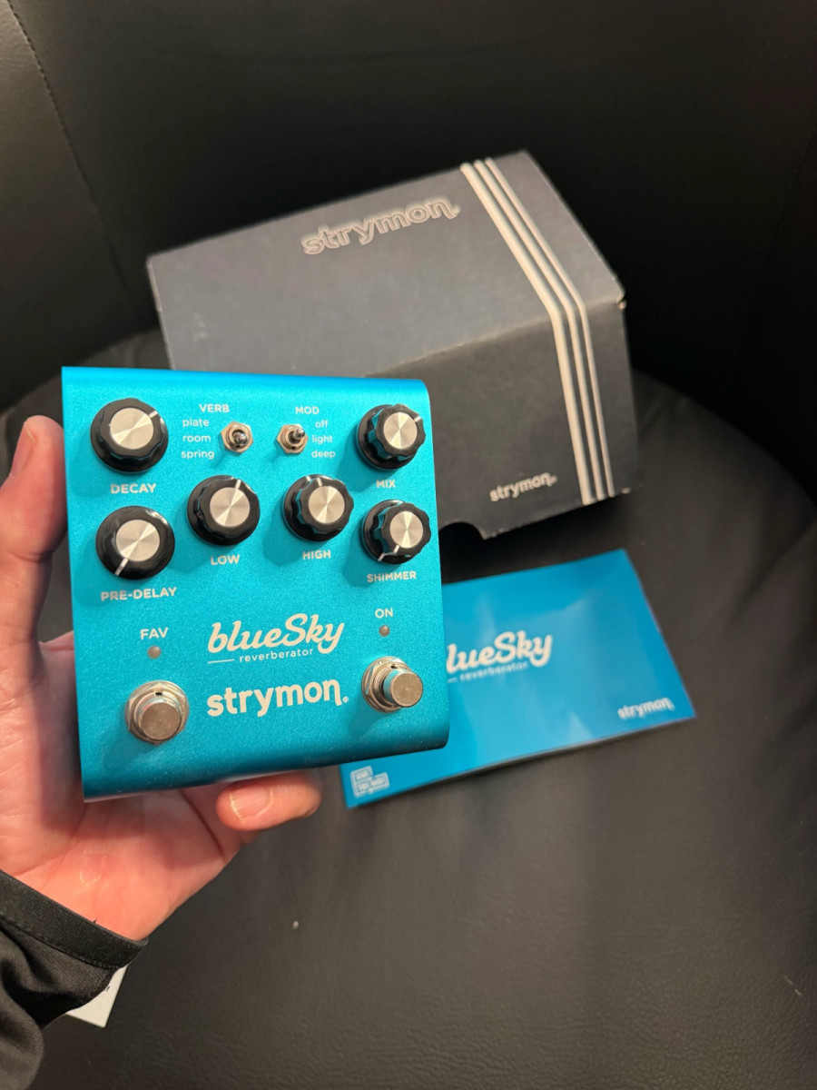 Se trata de un Strymon BlueSky V2. La última versión de una las mejores Reverb del mercado en un estado como nuevo. Solo tiene velcro en la base para añadirlo a una pedalera. Va con su caja y todo lo que trae de serie. Como si te lo compraras tu nuevo!!!