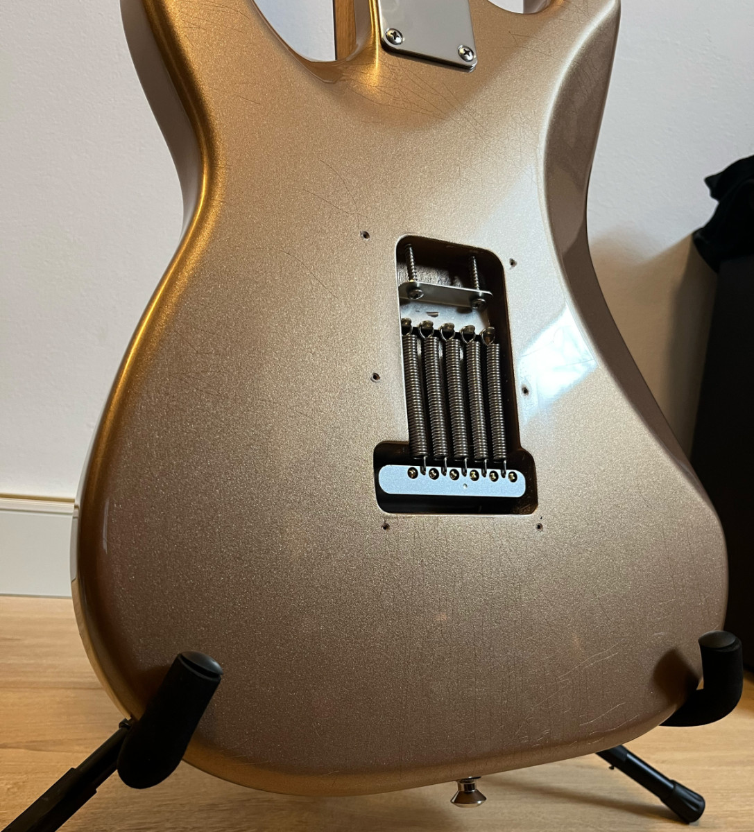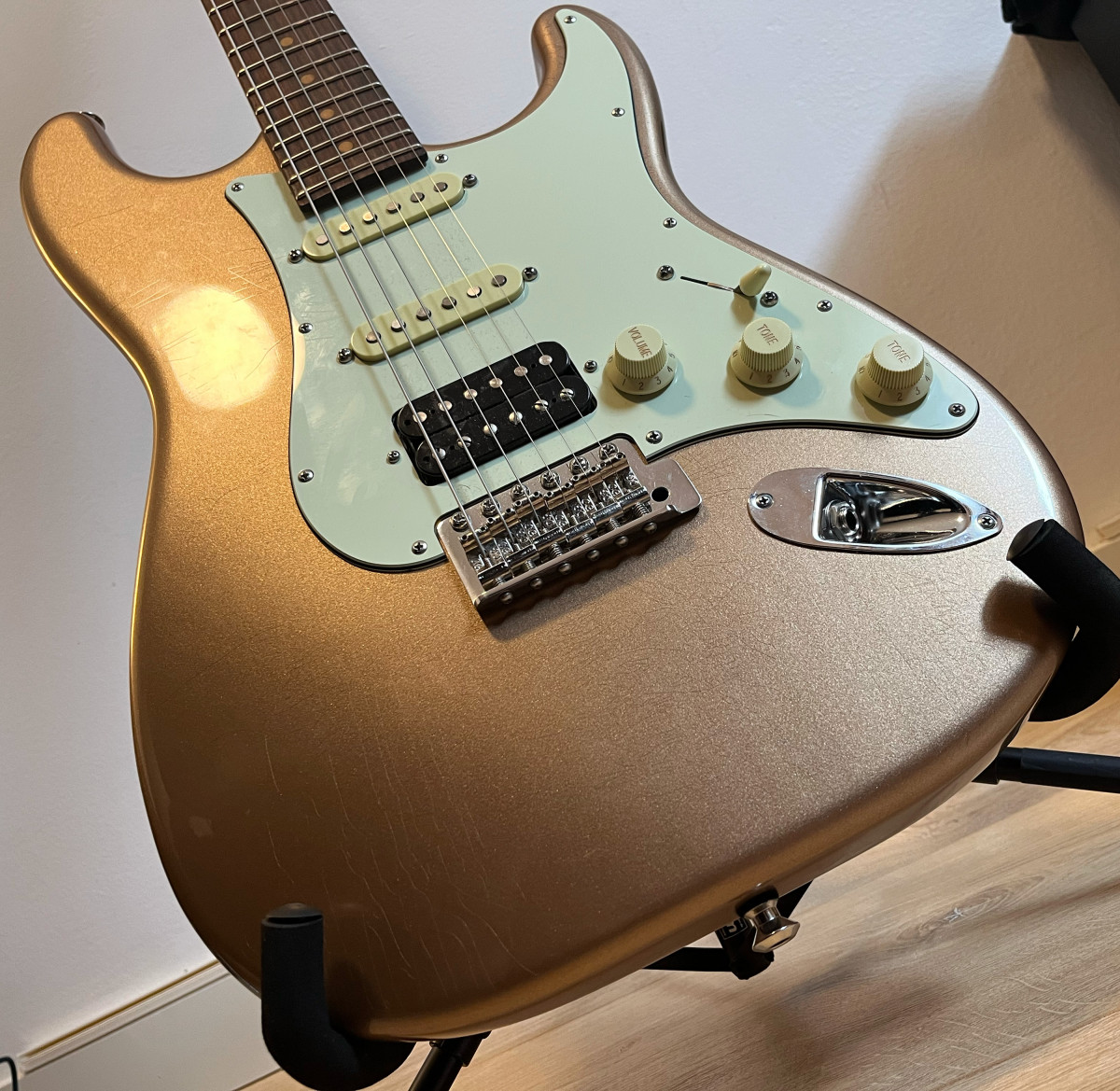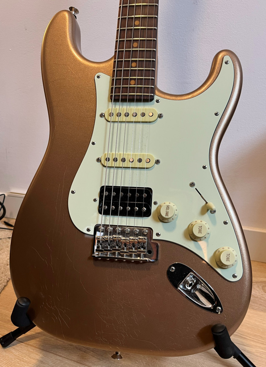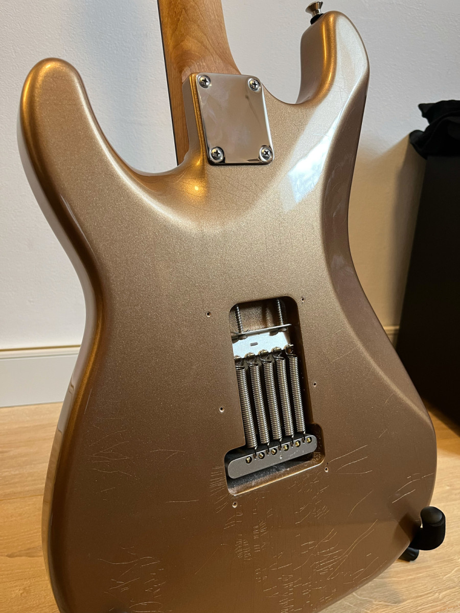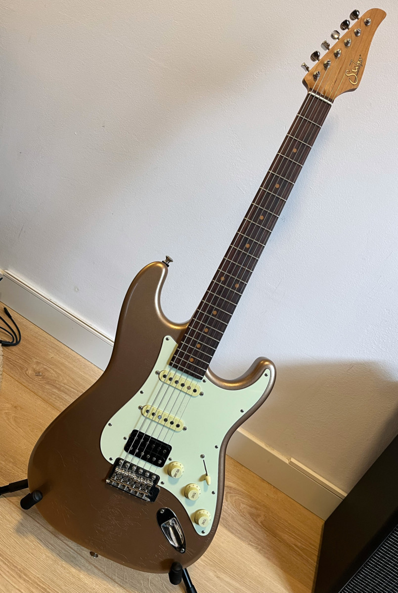 Mas informaciones donde la he comprado aqui (mismo numero de serie): tfoa.eu/en/shop/suhr-classic-s-vintage-limited-firemist-gold-hss-99258