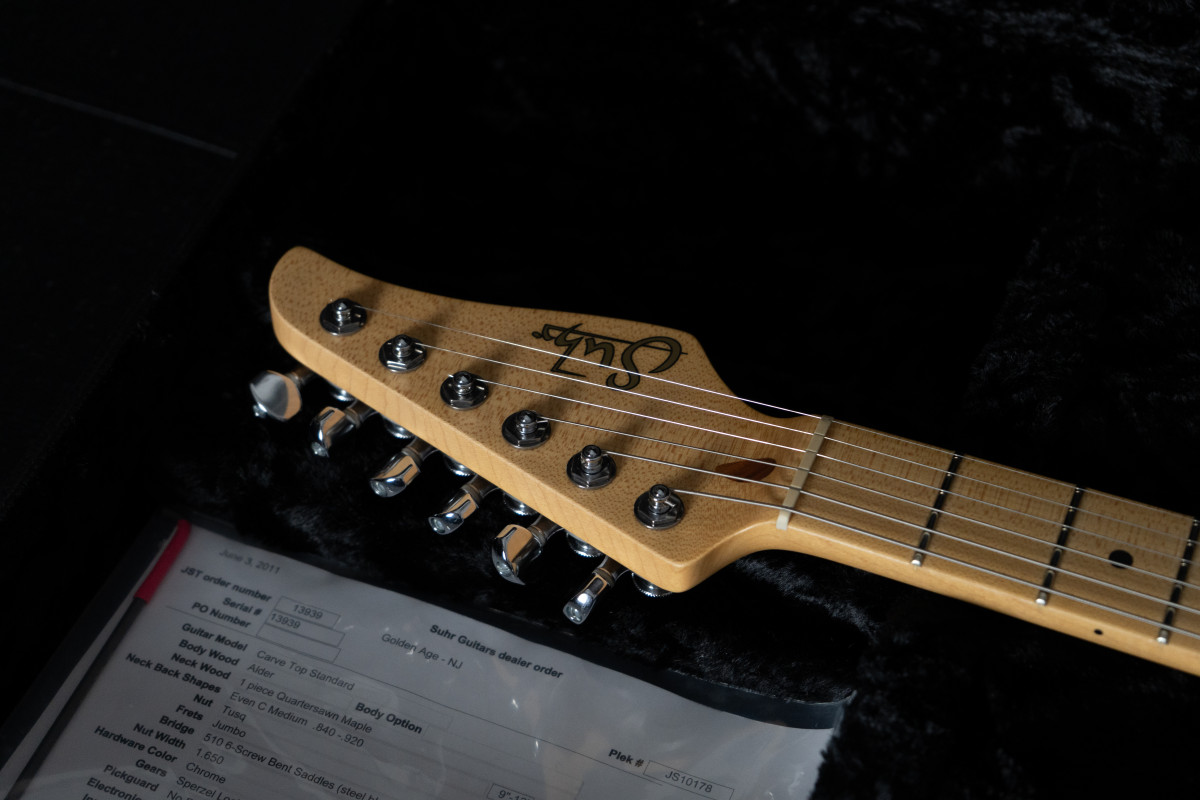 Para venta una guitarra Suhr súper rara, el mejor modelo de Suhr: la Carve Top. Esta vez con un precioso acabado: Orange Crush Metallic. La elegida por Mark Knopfler y otros.