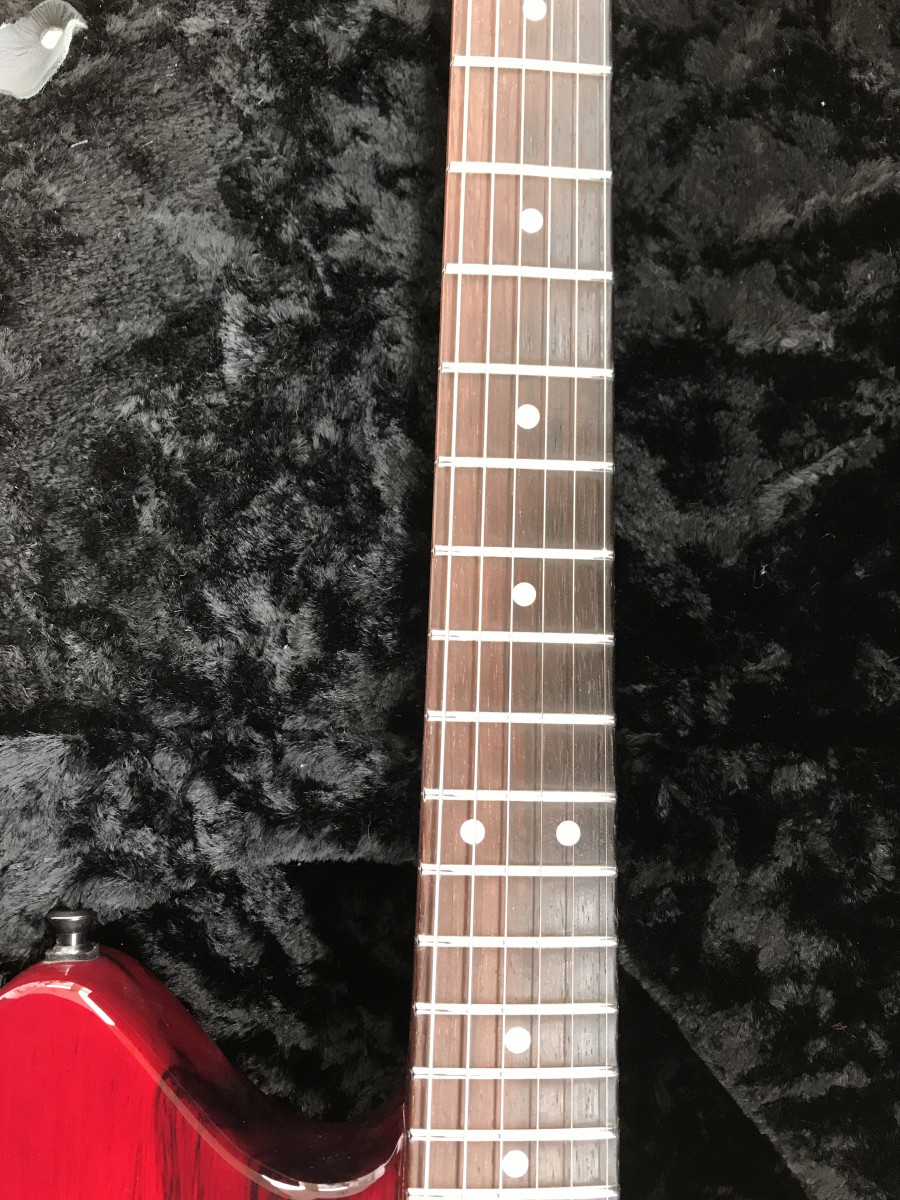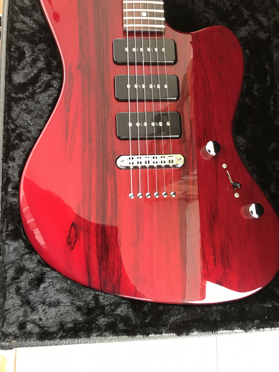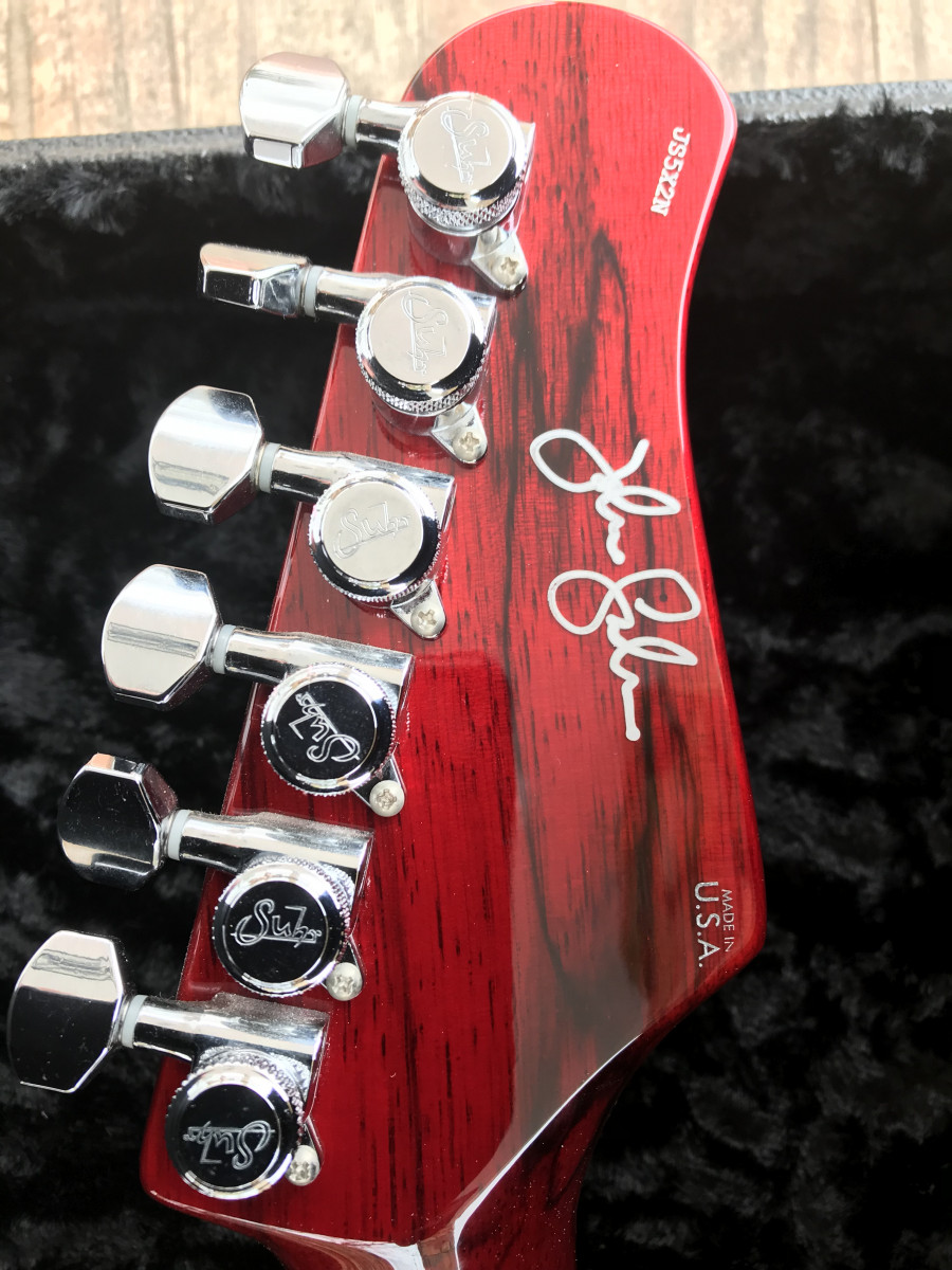 .Firmada por John Surs, cinco posiciones de pastillas, única no se fabricaron más, pala invertida, y un sonido de 5600 euros nueva.