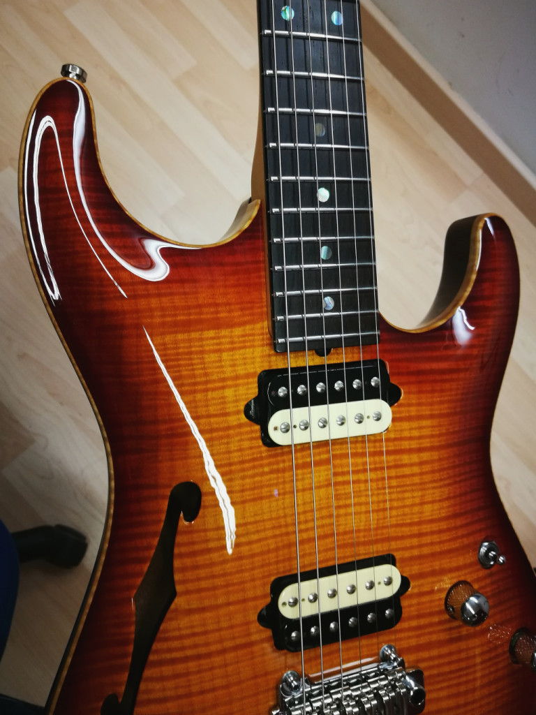 Vendo o cambio Suhr Standard Arch Top. Cuerpo de caoba con tapa de arce flameado y diapason de palorosa brasileño con 22 trastes de acero inoxidable. Suhr ya no tiene disponible diapasón de palorrosa brasileño.
