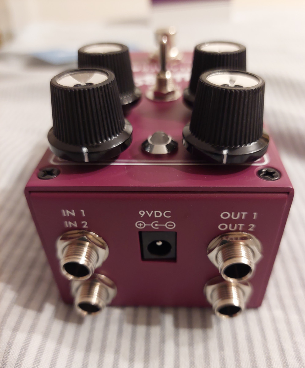 Difícil describir el sonido. Sí diré que NO es el flanger jet arremolinado que a algunos agrada. También que podría ser ideal para quien no guste del chorus pero sí algo de modulación distinta. Pedal especial que creo que equivocaron el nombre, lo que no quita de dar un sonido de alta calidad y silencioso como pocos. (Excepto el conmutador de dimensión, que hace ruido al cambiar de posición) La perilla dimensión le da más cuerpo, pero sin exagerar. Magnífico y original sonido a medio camino entre chorus/flanger. Probado, mimado y guardado, està absolutamente nuevo.