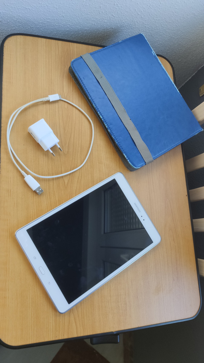 Vendo Tablet marca Samsung modelo SM-T550 con 16 GB de memoria y 1,5 GB de RAM. Se incluye el cable y el cargador original y una funda de regalo.