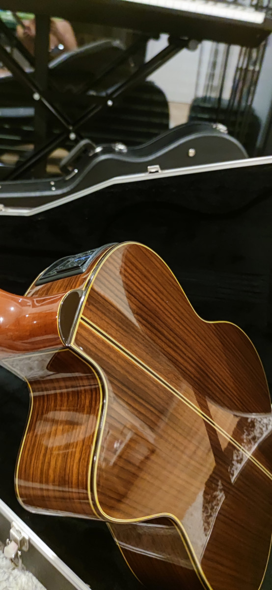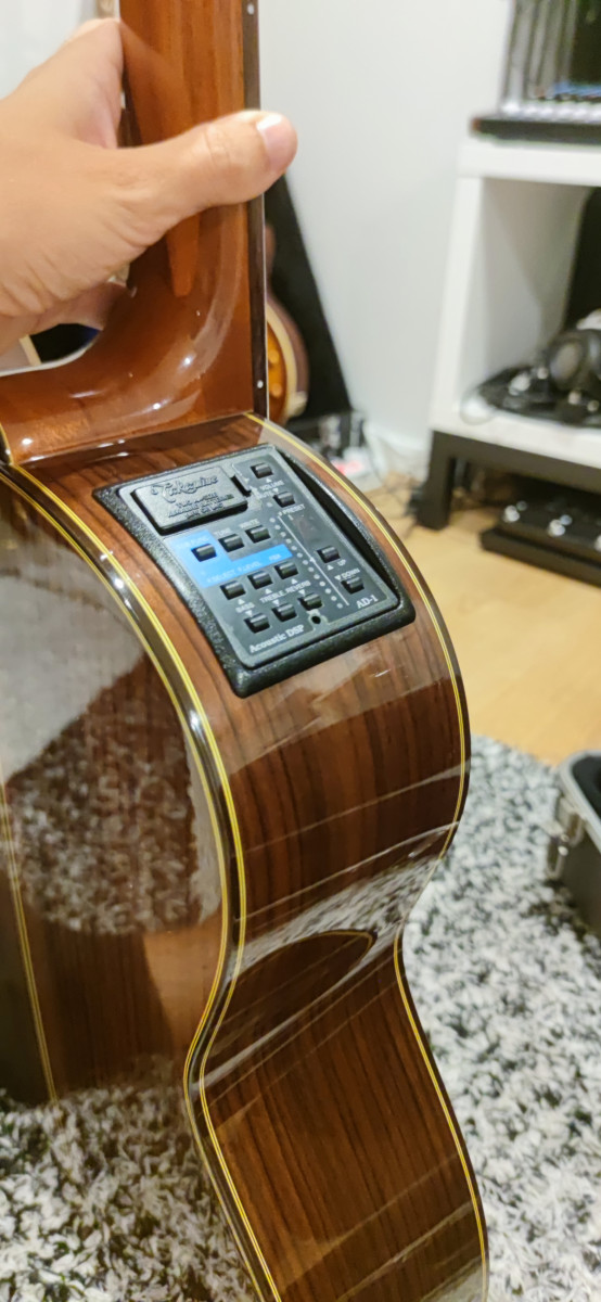 Monta el preamplificador Takamine DSP AD-1, con ecualizador de 4 bandas, afinador integrado y efectos digitales (reverb) que realzan el sonido sin necesidad de pedales externos. Muy versátil tanto en directo como en estudio.